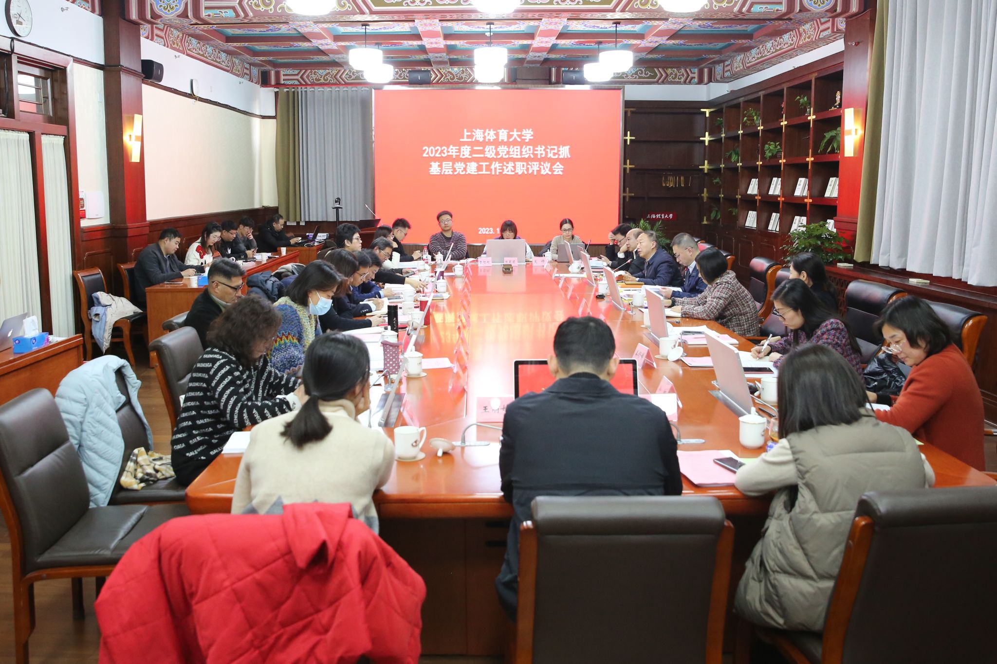 中乒院党委副书记陈莉莉和体教学院党委副书记曹智超总结了在学生工作人才培养方面落实抓基层党建工作的情况,聚焦就业工作等重点环节,介绍了发挥党建引领和攻坚克难作用的经验和做法。