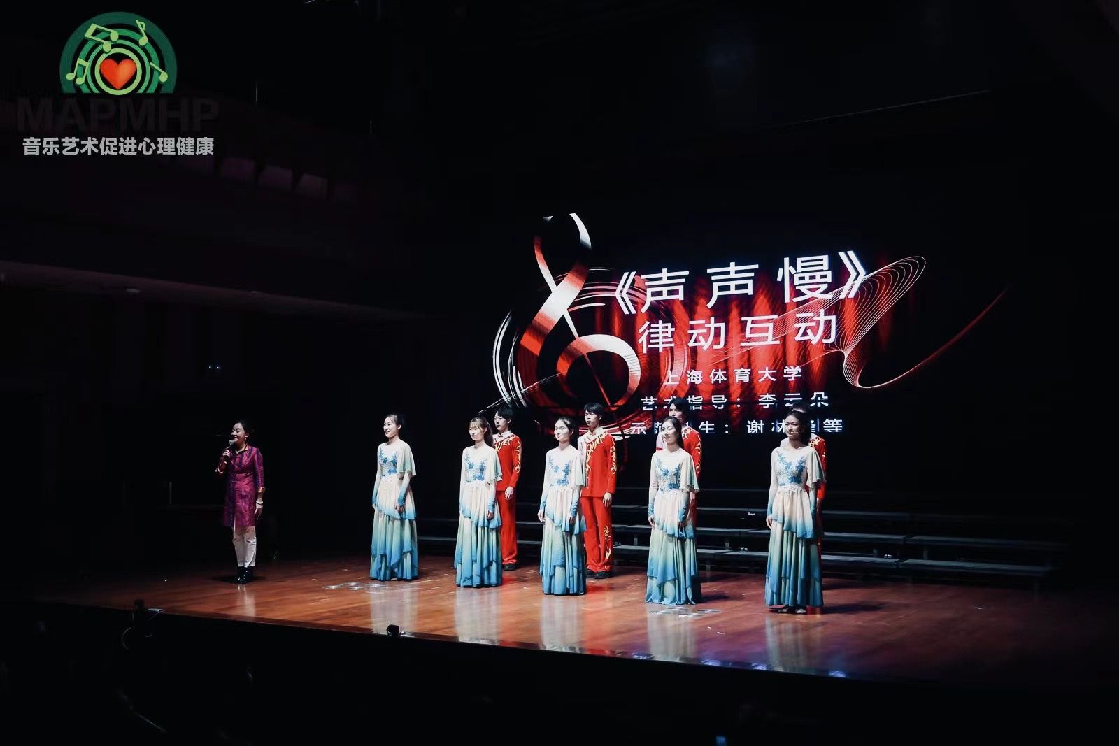为了呈现最完美的演出,总导演韩春英多次召开团队会议,并亲自带队前往上海音乐学院进行联排和彩排。视频组徐成龙老师团队共制作出23个视频,提供了近百张PPT用于活动现场使用。摄像摄影组共拍摄了近400分钟的视频和数百张的照片。此次活动分为上下半场,下半场由艺术学院独立承办,时长为40分钟。李云朵老师的《声声慢》的声乐律动和吴仁塔娜老师的《母亲是中华》韵律协奏带领观众进行互动式体验,现场反响热烈。参与者们通过学唱与学习打击乐器的热情,深深体会到了中国传统音乐的独特韵律和文化底蕴,另外艺术学院的舞蹈编导专业9名学生在活动中充分发挥了自己的专业特长,为观众带来了精彩的舞蹈表演。