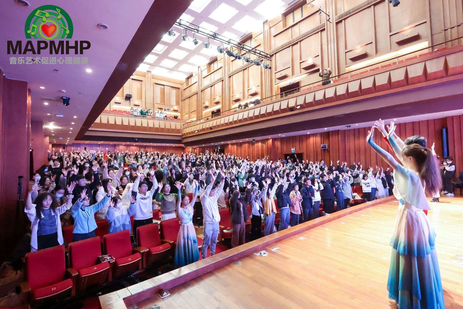 2023年12月12日,首届“音乐艺术促进心理健康”沉浸互动式体验在上海音乐学院盛大举行。学校近50名师生参与了此次活动,艺术学院副院长韩春英(主持工作)担任总导演,艺术学院教师吴仁塔娜、李云朵、郑小凡担任导演,经济管理学院教师徐成龙团队负责全场视频,艺术学院教师李人杰团队负责全场摄像,郑小凡负责统筹被试志愿者,新闻与传播学院教师翁捷团队负责全场摄影。艺术学院播音与主持艺术专业学生孙蕊、周琦伟担任活动主持人,为活动的顺利进行提供了坚实的保障。