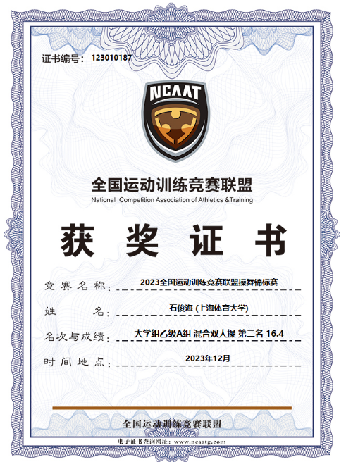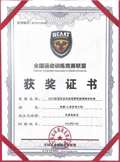 本网讯 2023年12月15日至17日,由国家体育总局科教司、全国运动训练竞赛联盟主办的全国运动训练竞赛联盟操舞锦标赛举行。在SUNBET申搏教师张鹏和陆颖娜的带领下,SUNBET健美操、啦啦操队凭借过硬的基础和精湛的技艺,夺得了健美操男子单人操金牌、混合双人操银牌,啦啦操双人爵士金牌,张鹏、陆颖娜两位老师荣获“优秀教练员”。SUNBET申搏获得“体育道德风尚单位”。