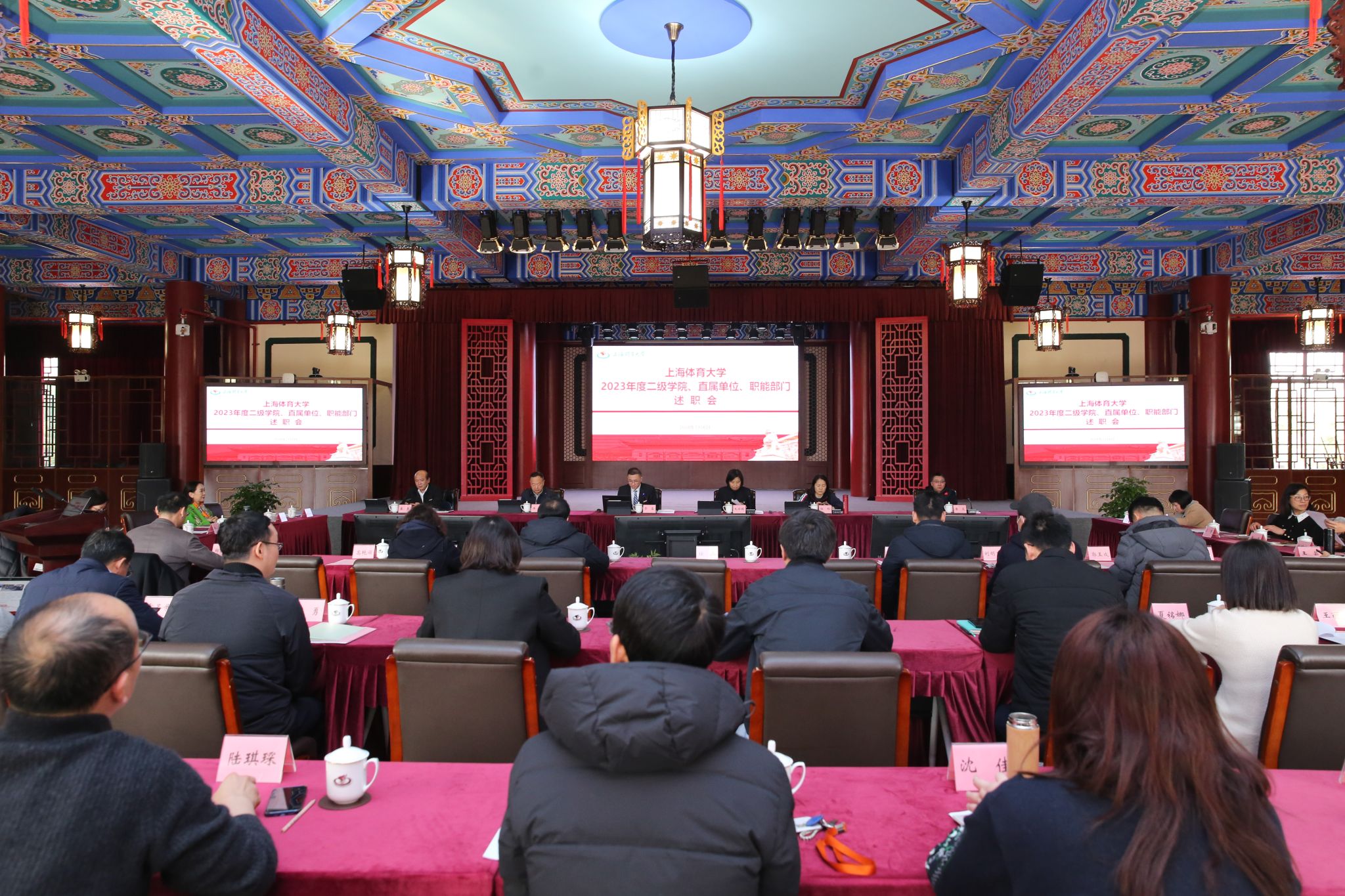 本网讯 为激励各单位(部门)担当作为、改革创新,强化服务意识,推进效能建设,学校于1月8日在绿瓦大礼堂召开了2023年二级学院、直属单位、党政职能部门述职会。学校党政领导出席会议。