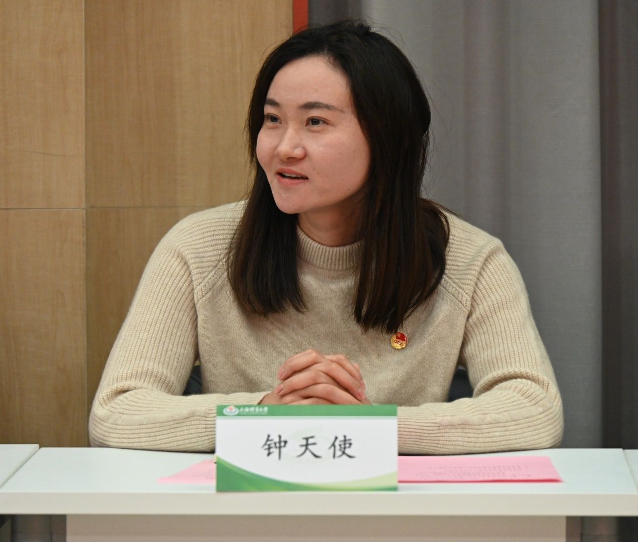 团市委兼职副书记、奥运冠军钟天使作点评讲话。她肯定了2023级专硕1班团支部在开展思想旗帜、坚强核心、强国复兴、挺膺担当专题学习中所表现出的认真态度和对理论与实践结合的积极探索,并结合自身为国而战、为城市而战的竞技体育经历和竞技体育发展过程中的科技力量,鼓励大家增进交流、拓展思维,增加国家自豪感和民族认同感,为建设体育强国贡献青年智慧和青年力量。
