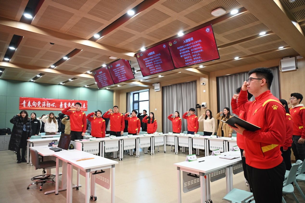 最后,团支部书记房立带领团员们重温入团誓词,全体团员高举右拳,庄严宣读入团誓词。