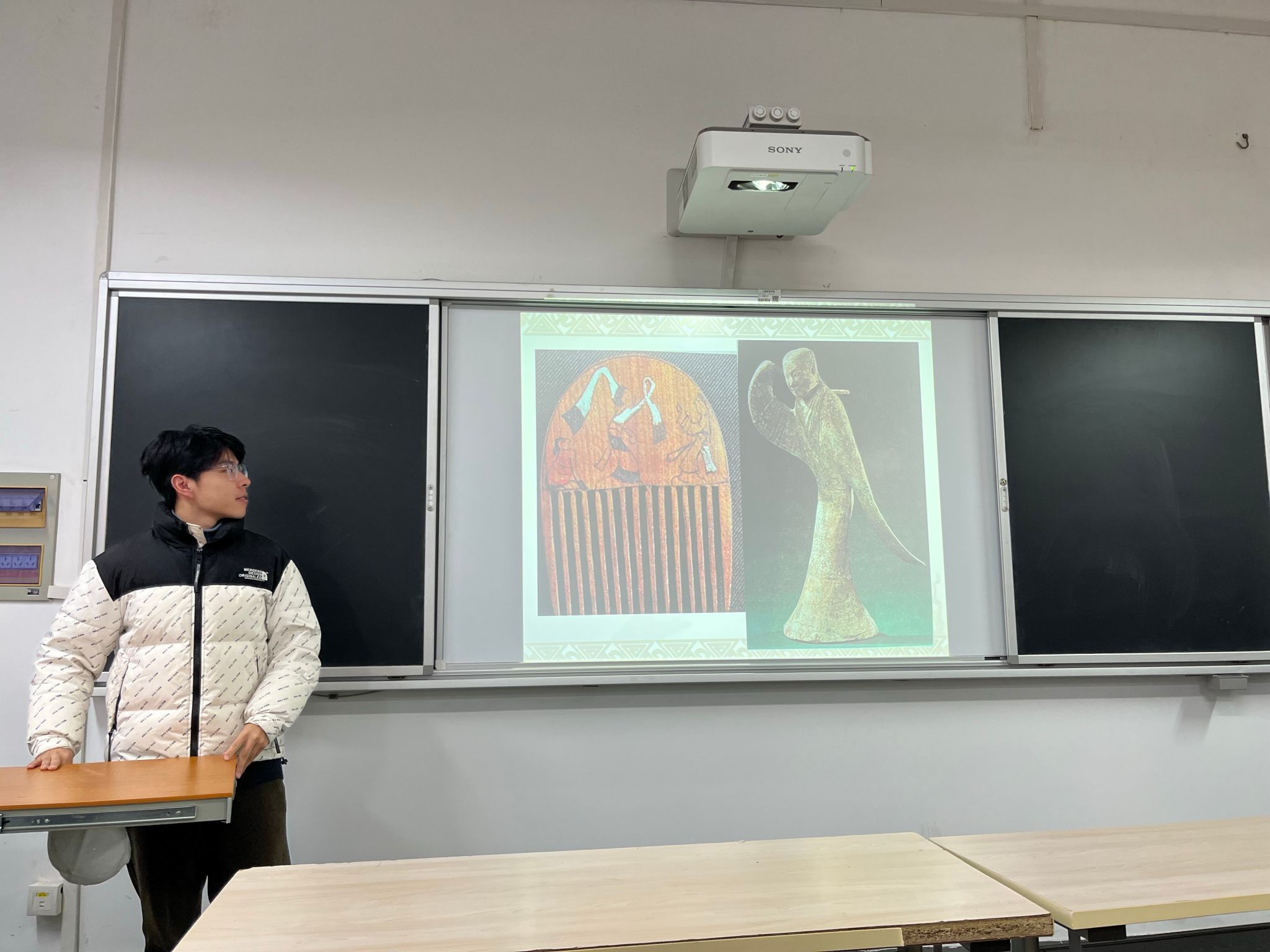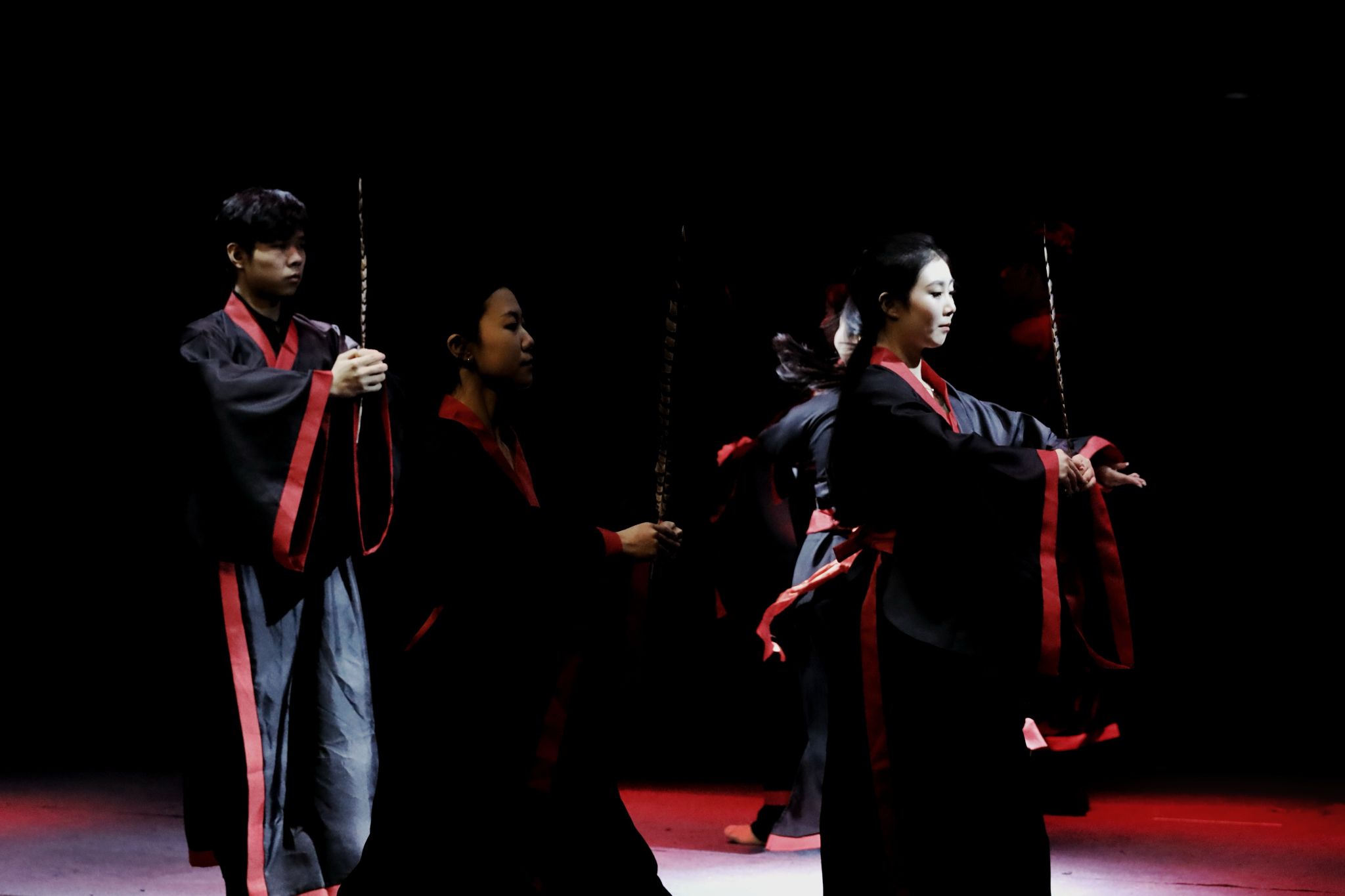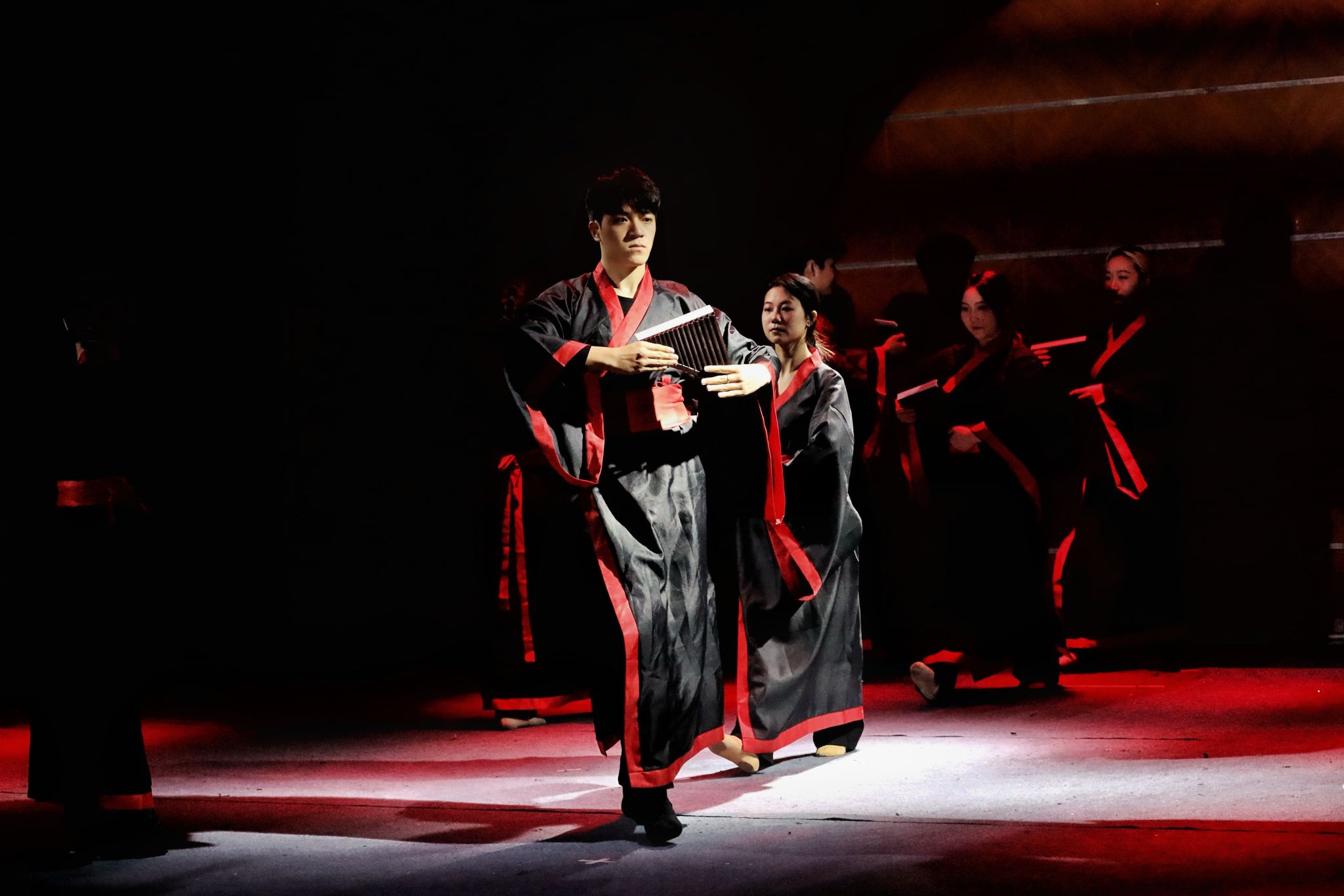 在搜集资料时,同学们不仅注意古代文献、出土的实物和画像资料,因为具体而形象可操作性大,对道具和服饰的制作以及舞姿的编排具有直观的参照价值。2022级舞蹈编导专业马浩冉说:“我们对古代舞蹈史的认识从仅停留在书本,到脑海里的主观反映,再到现场大家看到的实践性建构。其间,是经过了无数次的推翻,修改,再推翻的。”聂佳豪同学表示:“在建鼓舞复现过程中,首先对建鼓舞的起源、发展、表演形式等进行深入了解,并参考了大量文物、文献中关于建鼓舞的描述,我们在舞台上不仅是复现或重建历史,更重要的是探索自我和世界的一种方式,它让我们发现历史与我们、历史与当下、当下与我们之间存在更深层的意义。”