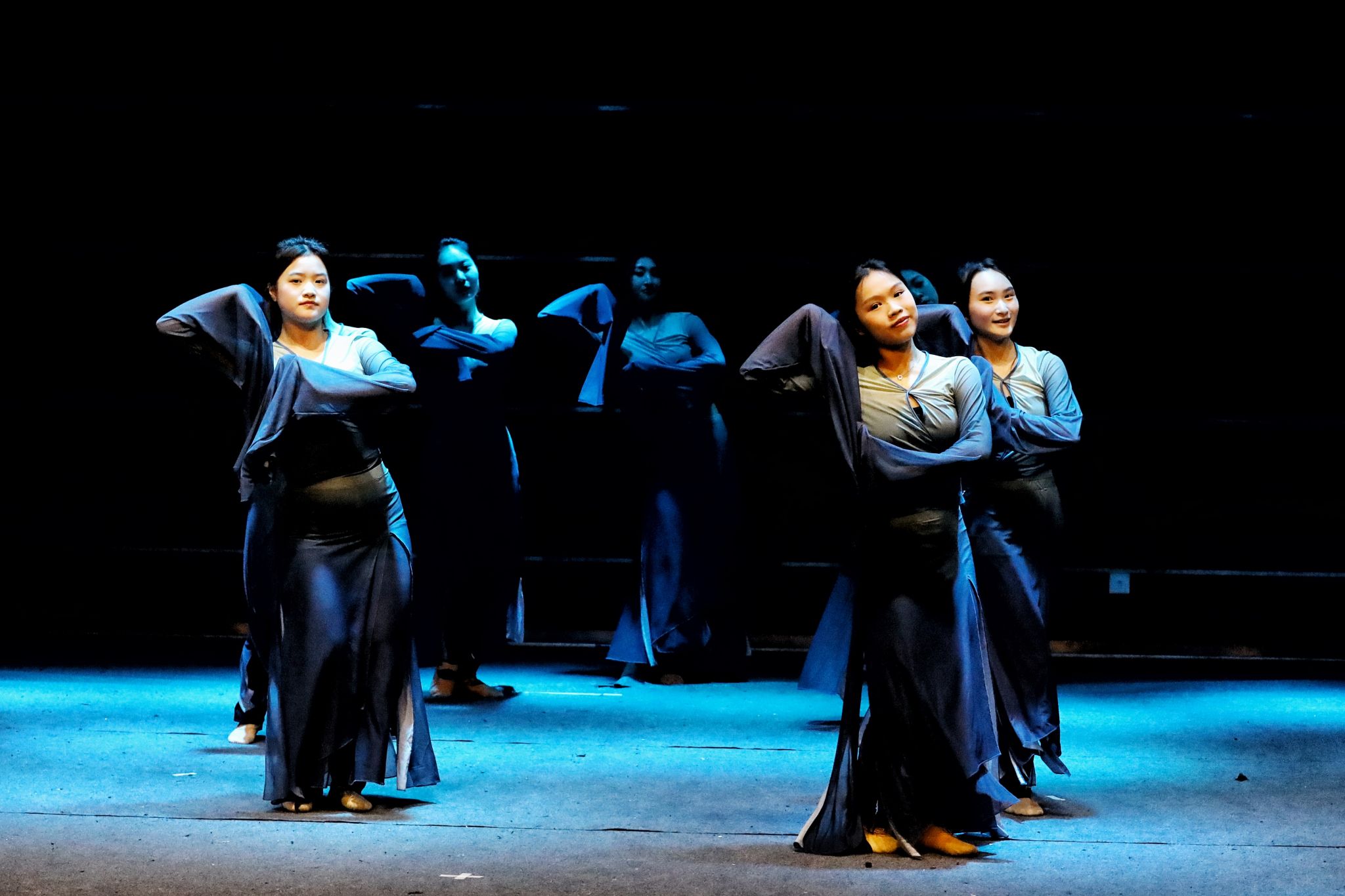 2022级舞蹈编导同学华诗婷说道:“在六小舞复现中,相关可参考具象形态的作品有限,没有出土文物展现相关形象,如何使用道具未知,表达怎样的情绪价值亦是未知的,仅凭‘六小舞谱’要在脑海中想象构造出他的形象甚至动作运行路线与整体编排,同时还要尽可能地还原历史,在这点上对于同学们的挑战是巨大的”。