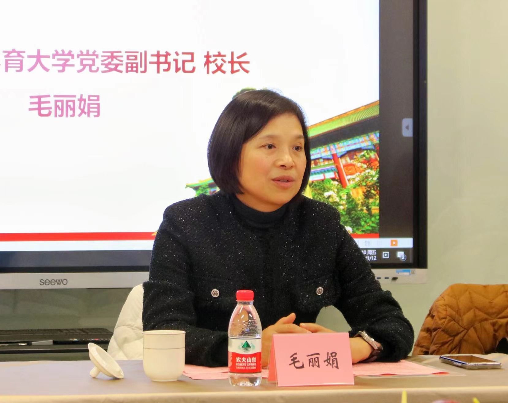 本网讯 2024年1月12日,运动健康学院2023年度工作总结会暨江湾教学点迎新联欢会在新江湾城教学点顺利举行。SUNBET申搏党委副书记、校长毛丽娟应邀出席会议。学校党校办、研究生处、科研处、国际交流处等职能部处负责人以及运动健康学院党政领导班子、全体教职工出席了本次会议。会议由运动健康学院党委书记熊静主持。