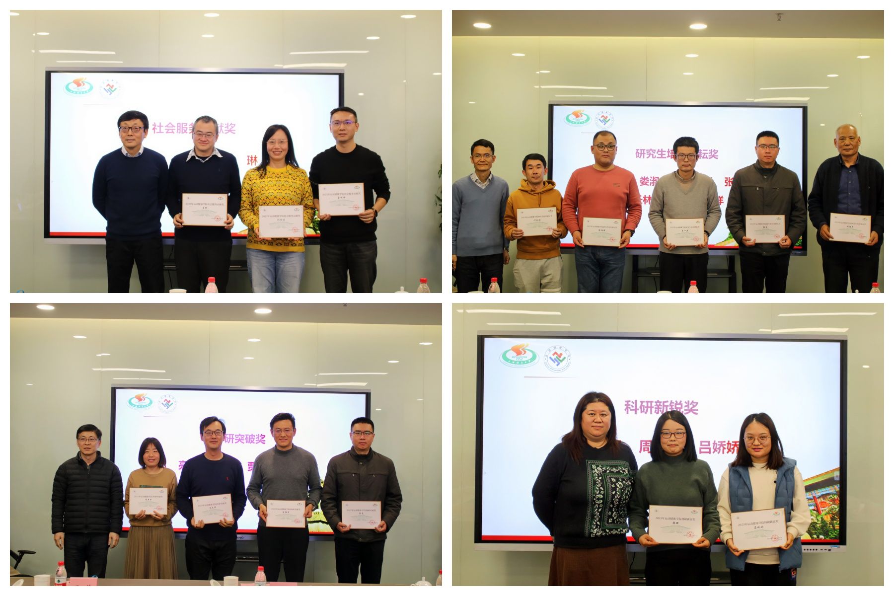 为表达对学院教师的致敬,会议表彰了2023年度考核为“优秀”的教师,并先后颁发了“讲台耕耘奖”“研究生培养耕耘奖”“科研突破奖”“科研新锐奖”“社会服务贡献奖”“超级妈妈”等奖项,鼓励全体教师在教书育人、科学研究、服务社会等方面继续不忘初心、牢记使命,争做新时代的“四有好老师”。