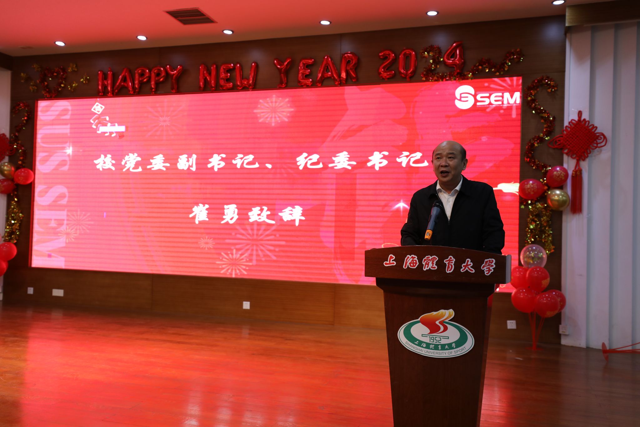 SUNBET申搏党委副书记、纪委书记崔勇对经济管理学院2023年所取得的建设成果予以肯定,向辛勤工作的全体教职工致以最衷心的感谢和最美好的祝福。围绕新一年的工作,他鼓励全体教职工以饱满的精神为未来发展做好规划,贯彻落实深化高等教育综合改革意见和十大专项行动计划,同心同德,埋头苦干。坚持创新引领,着力落实立德树人根本任务,以全面加快学校高质量发展,建设教育强国、科技强国、人才强国、体育强国和新时代社会主义现代化建设贡献力量。