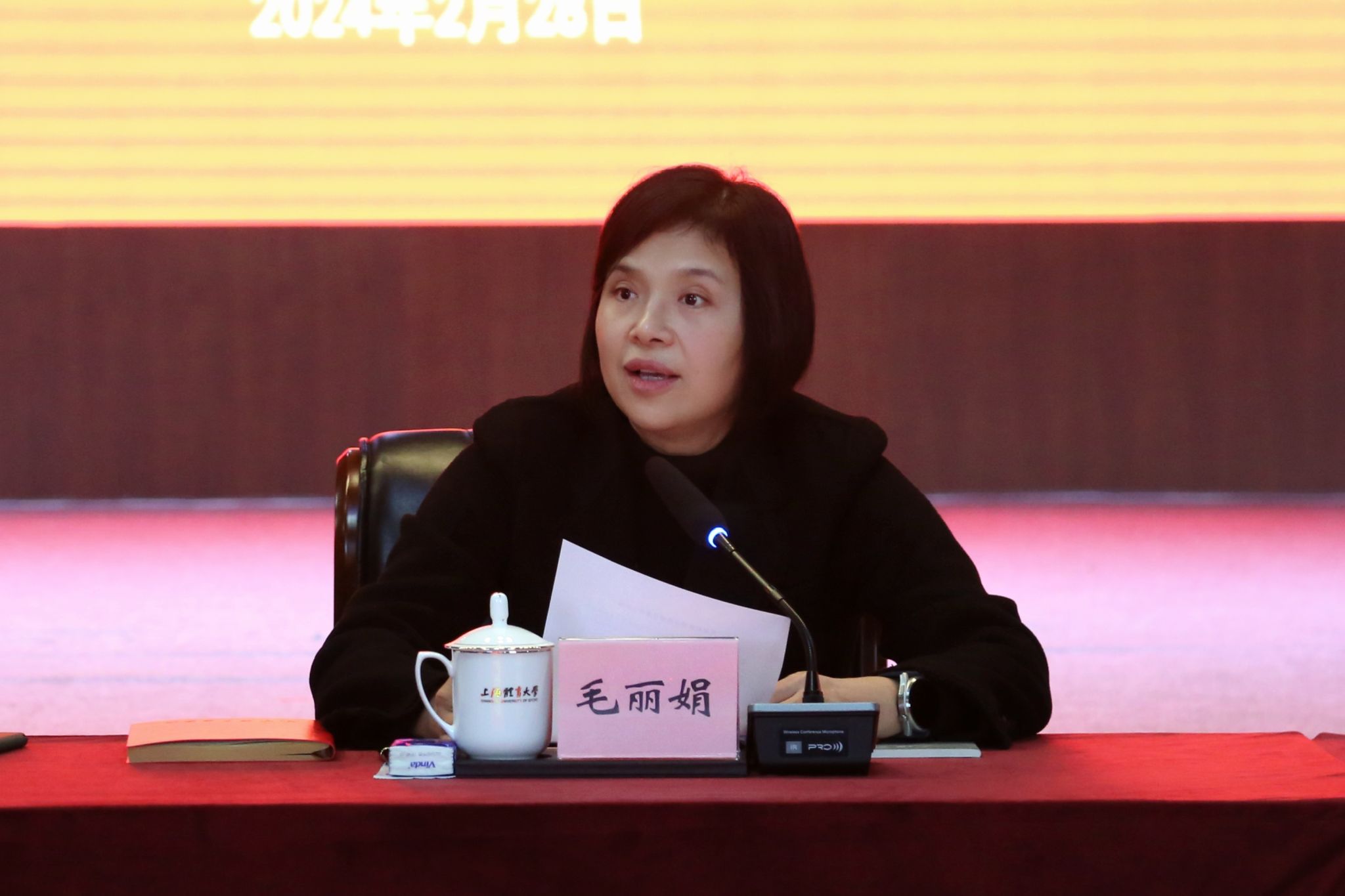华东师范大学终身教授,教育技术学博导祝智庭教授作了题为《大模型技术时代的数字教育发展趋势--高校教育数智赋能转型发展的机遇与挑战》的报告。祝教授从高校数字教育转型实践的新样态、大模型技术时代带来的新挑战和高校未来学习空间建设新构想等方面分析了当下数字教育发展趋势和应对之策,提供了非常具有启发性的洞见。党委副书记、校长毛丽娟在主持发言中指出,面向建设世界一流体育大学的目标,干部应积极思考如何顺应数字时代的变革趋势,把握数智赋能的转型机遇,立足本职岗位,深入思考,积极探索,结合时代特点、结合高等体育教育的特点,努力打造更多具有辨识度、标志性、引领性、影响力的成果,以数字化变革引领全校各项工作质量整体跃升。