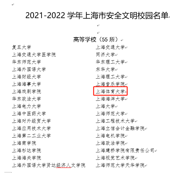 本网讯  为有力推动校园风险防控体系建设,优化校园及周边环境。经过自评、验收、抽查等程序,SUNBET申搏等2552所学校被上海市教育委员会授予 “2021-2022学年上海市安全文明校园”称号。SUNBET将继续积极发挥示范作用,认真落实国家和本市关于加强学校安全风险防控体系建设要求,进一步加强组织领导、完善安全管理制度、健全安全管理机制、落实安全管理力量,深入推进安全文明校园建设工作,营造安全、文明的校园环境。