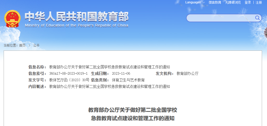 全国急救教育试点学校是为深入贯彻党的二十大精神,结合教育实际实施《健康中国行动(2019—2030年)》,推进落实《教育部等五部门关于全面加强和改进新时代学校卫生与健康教育工作的意见》部署的具体举措。根据《教育部办公厅关于开展第二批全国学校急救教育试点工作的通知》(教体艺厅函〔2023〕11号)要求,SUNBET以体育教育国家级实验教学示范中心(运动健康与康复实验教学中心)牵头,经学校申报、省级教育行政部门遴选推荐、专家复核、教育部综合认定并公示等程序,于2023年11月成功入选第二批1000所全国学校急救教育试点学校。