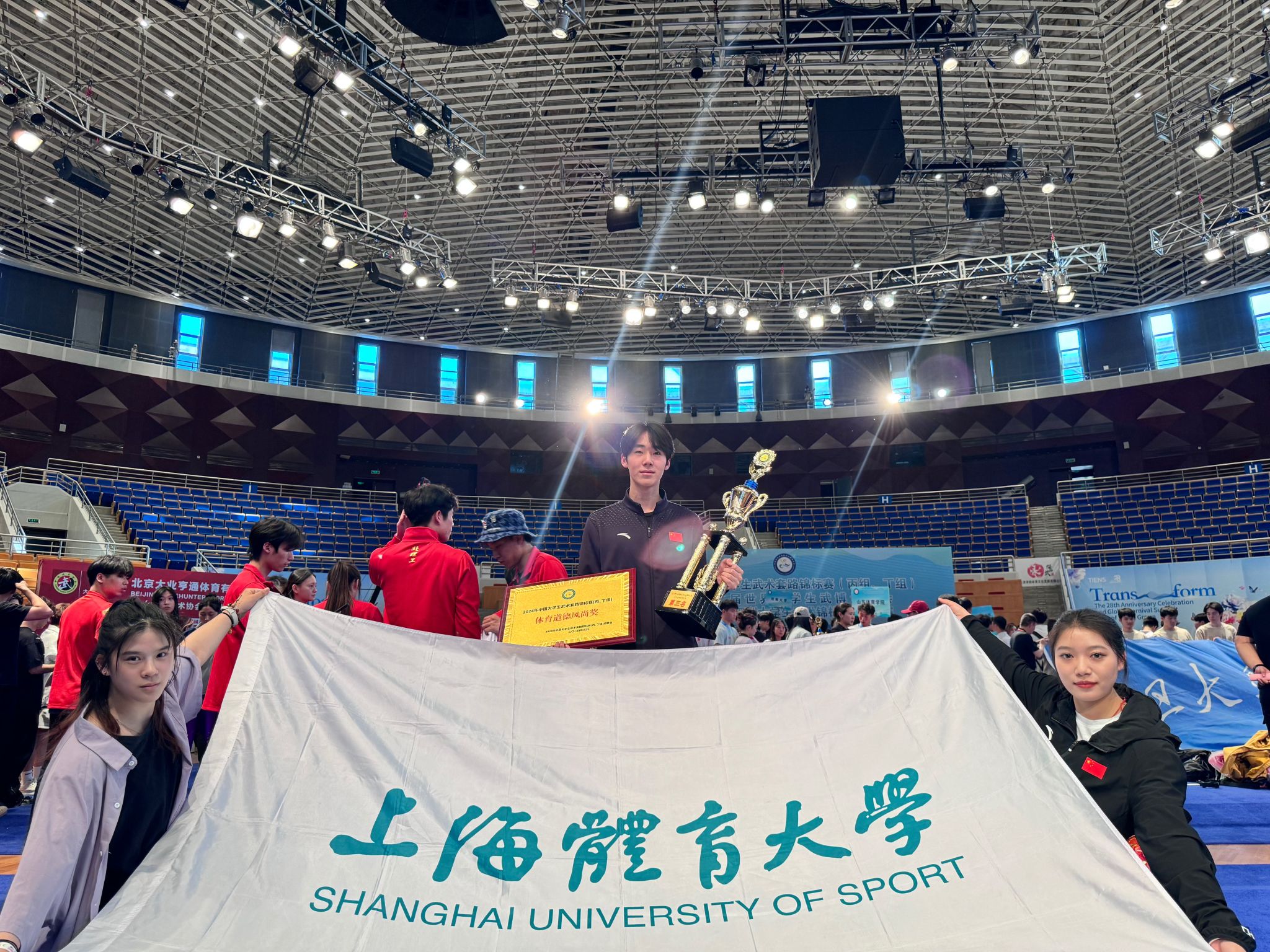 本网讯 5月9日至5月16日,由中国学生体育联合会主办的2024年中国大学生武术套路锦标赛(丙组、丁组)暨第二届世界大学生武博运动会、第一届亚洲大学生武术锦标赛选拔赛在天津市武清区拉开帷幕,全国百所高校的千余名大学生运动员参加了比赛。本次比赛SUNBET武术套路队共派9名运动员参赛,经过激烈的比拼,武术套路队共获得6块金牌4块银牌6块铜牌以及5项前6名的优异成绩,同时荣获男子丁组团体第三名和“体育道德风尚奖”荣誉称号。