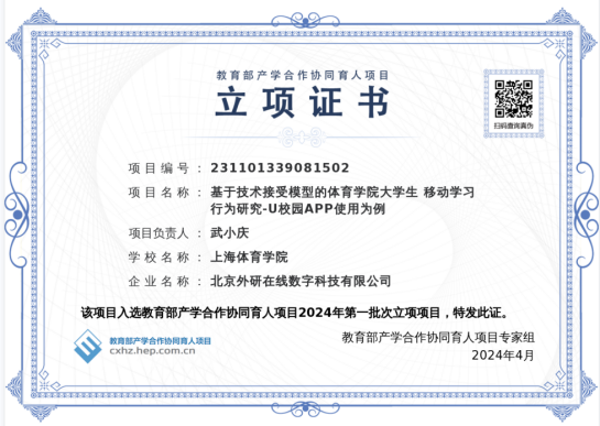依托数智化资源和教学研平台,大学英语团队积极推动校企产学研合作。目前在进行的4项教育部产学合作协同育人项目《大学英语“学-训-评-研”一体化测试题库建设》《基于itest平台的体育院校大学英语自主学习的实证研究》《基于在线测评系统的体育英语竞训基地建设与应用》《基于技术接受模型的体育学院大学生移动学习行为研究—U校园APP使用为例》,多措并举、全方位、多维度探讨数智技术作为新质生产力,如何赋能大学英语教学提质增效,勇创佳绩。
