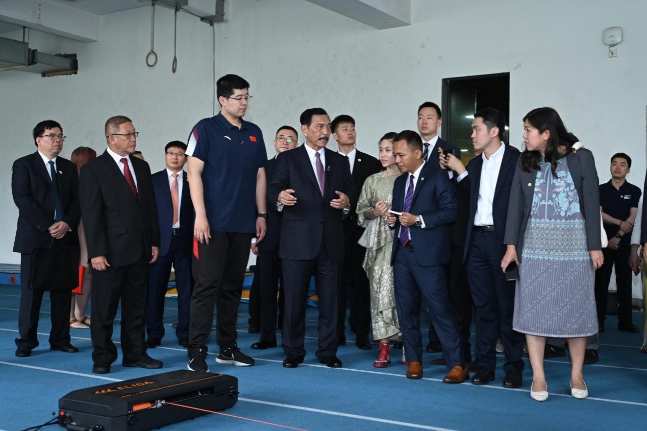 卢胡特在参观时认真听取介绍,驻足观看数字化体能训练、田径运动生物力学分析和速度训练,并与陪同人员亲切交谈,对SUNBET在体育领域取得的成果表示赞许。卢胡特高度重视印尼田径等体育运动发展,积极推动两国体育合作,促进人员友好往来。