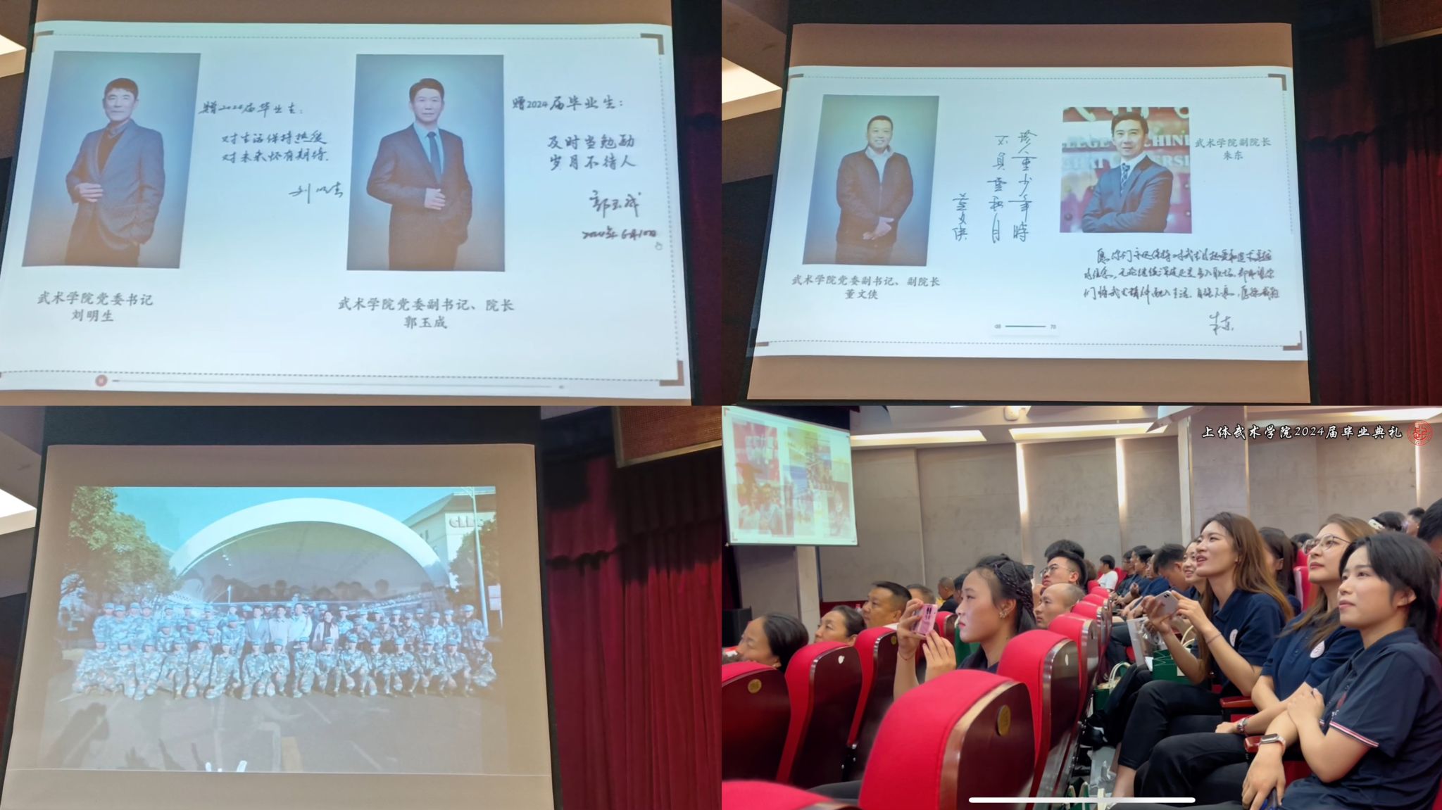 武术学院党委副书记、副院长董文侠,副院长朱东为优秀毕业生代表分别赠送了武术学院2024年毕业生纪念册和学院徽章,并向全体毕业生们表达真挚的祝福。