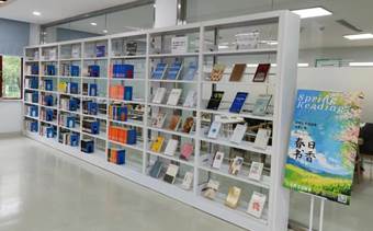 空间服务是图书馆将知识空间、服务设施、学习场所、文化氛围融为一体从而服务于读者的重要途径。在本届读书节期间,图书馆在老馆开辟了新的阅读角,重点展示中外经典文学作品、茅盾文学奖作品及科幻文学等作品;在新馆特设“向新而行·启智未来”科幻主题书展,从空间布局上让读者耳目一新,帮助读者更快发现好书,更便利借阅好书。