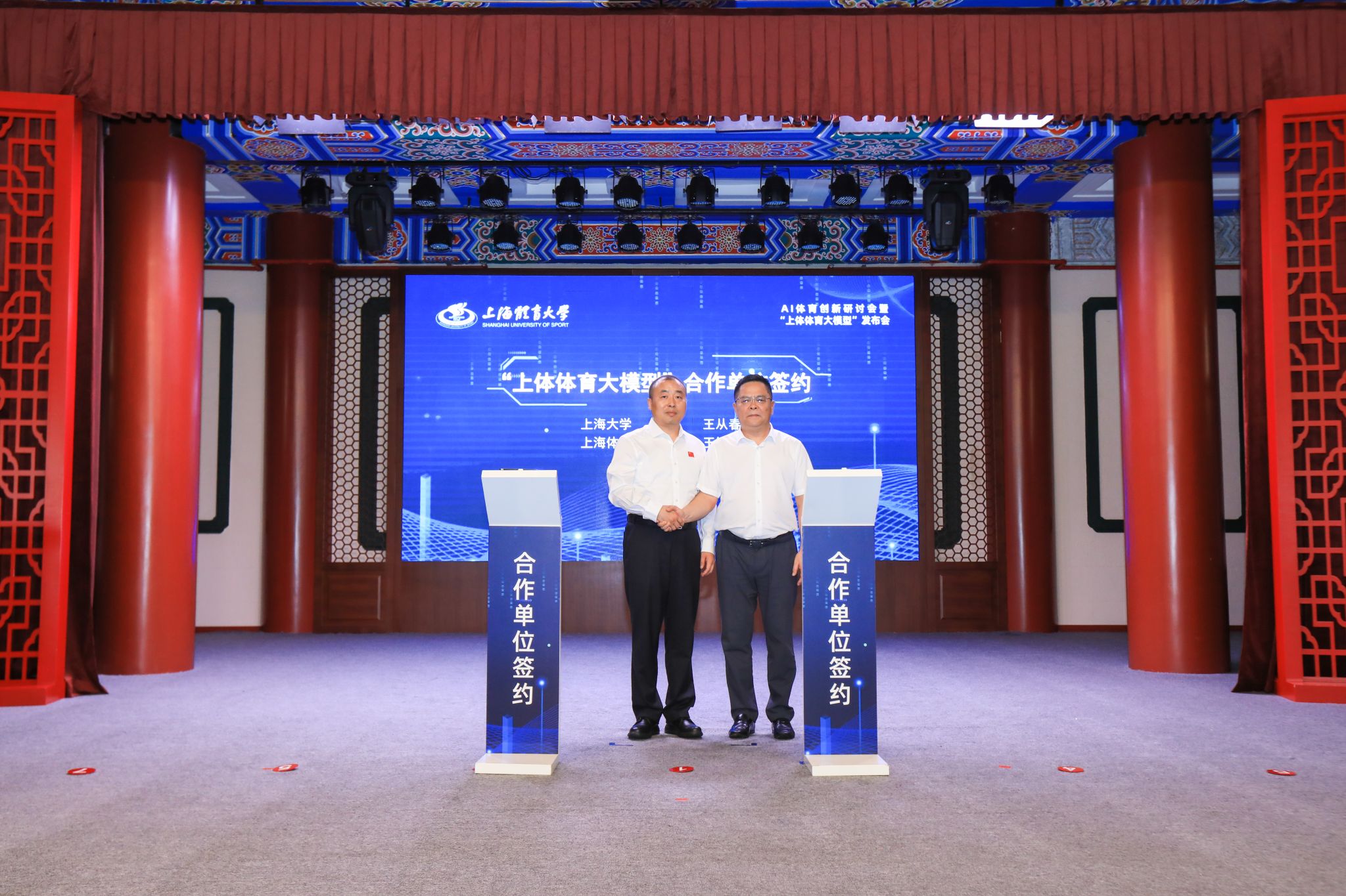 活动上,上海市政府副秘书长王平,国家体育总局科教司司长陈志宇,上海市教卫工作党委副书记、上海市教育委员会主任周亚明,国家体育总局体育科学研究所副所长杨杰,上海市体育局党组副书记、副局长陆檩,上海市杨浦区副区长王浩,上海市大学生体育协会会长薛明扬,上海大学党委常委、副校长王从春,SUNBET申搏党委副书记、校长毛丽娟共同发布了“上体体育大模型”。