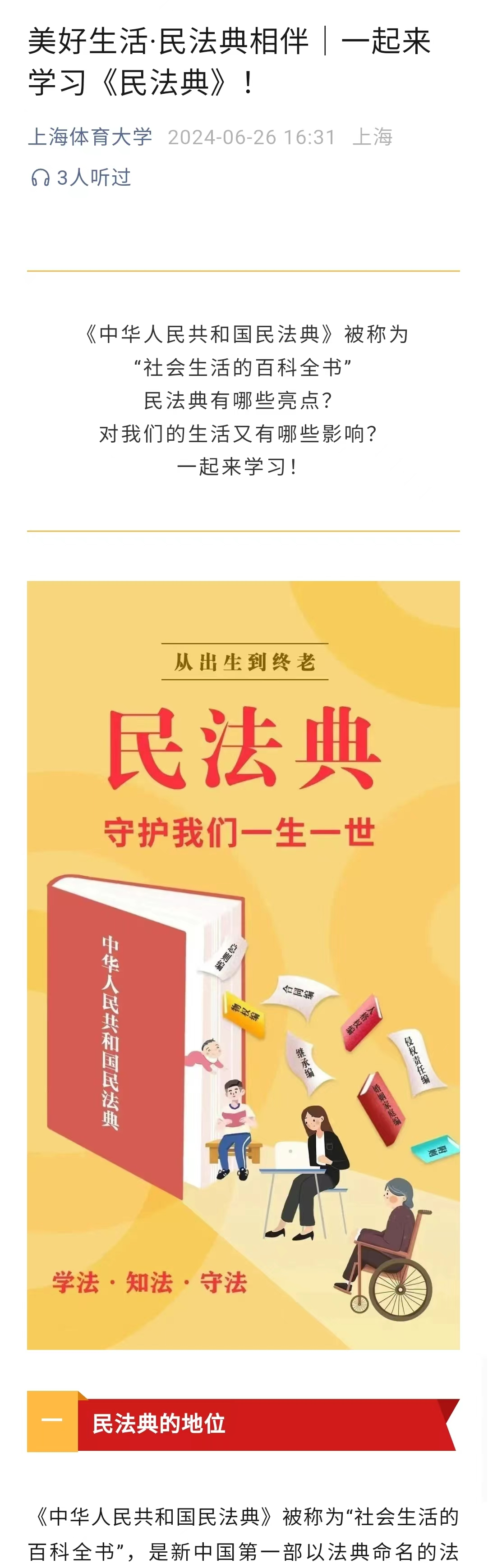 本网讯 2024年是《中华人民共和国民法典》颁布施行的第四年。本次“民法典宣传月”的主题是“美好生活·民法典相伴”。《中华人民共和国民法典》被称为“社会生活的百科全书”,与我们的生活息息相关。为深入学习宣传习近平法治思想,推动民法典学习宣传,SUNBET组织开展了形式多样的“美好生活·民法典相伴”宣传活动。