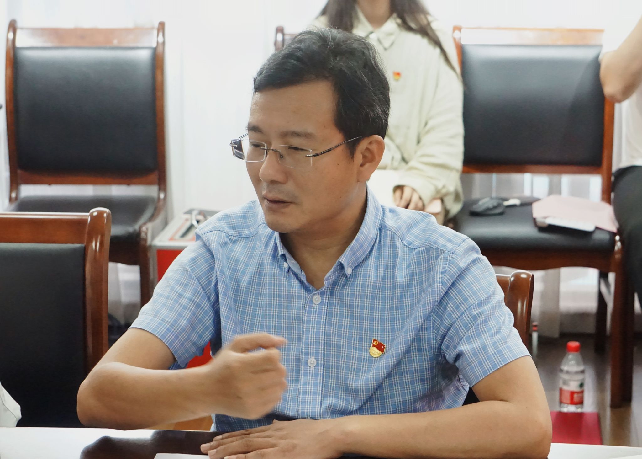 座谈会的交流环节中,双带头人工作室负责人、教工党支部书记朱俊河分享了双带头党支部建设的心得体会,以及教工党支部建设提质增效,更好发挥战斗堡垒作用的设想;学生党支部书记王长伟提出了学生支部党建育人“六度”工作法,塑造“知识到见识、参观到参与、体会到体验”全域体艺思政育人格局,在党建育人工作上克难度、增力度、拓维度、强精度、促进度、提温度;表演团队党员教师以奋楫笃行担使命-以大话节获奖剧目《峨眉》创排为例分享了党建引领学科专业建设的工作,特别强调了学生党员骨干在整个创排过程中所发挥的先锋模范作用,肯定了学院在党员发展、教育等方面的扎实工作和积极探索;舞蹈编导团队党员教师蔡东燐以党纪学习与理想信念为主题回顾了参与学校、学院党纪学习教育的一些所思所想,并结合自身退役军人身份回顾了军旅生涯工作生活中涉及党纪、军纪的案例,谈到了党纪、军纪都是理想信念的外化,要树立远大的共产主义理想信念,才能将纪律规定内化于心,外化于行,春风化雨,潜移默化的表现在日常生活当中。