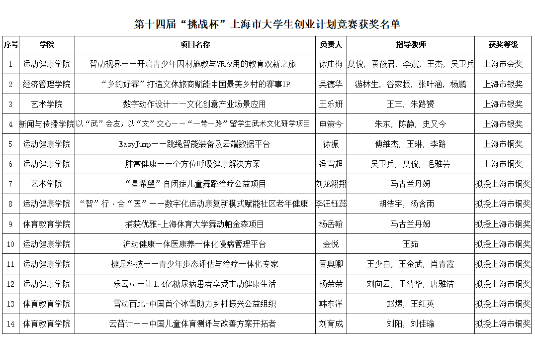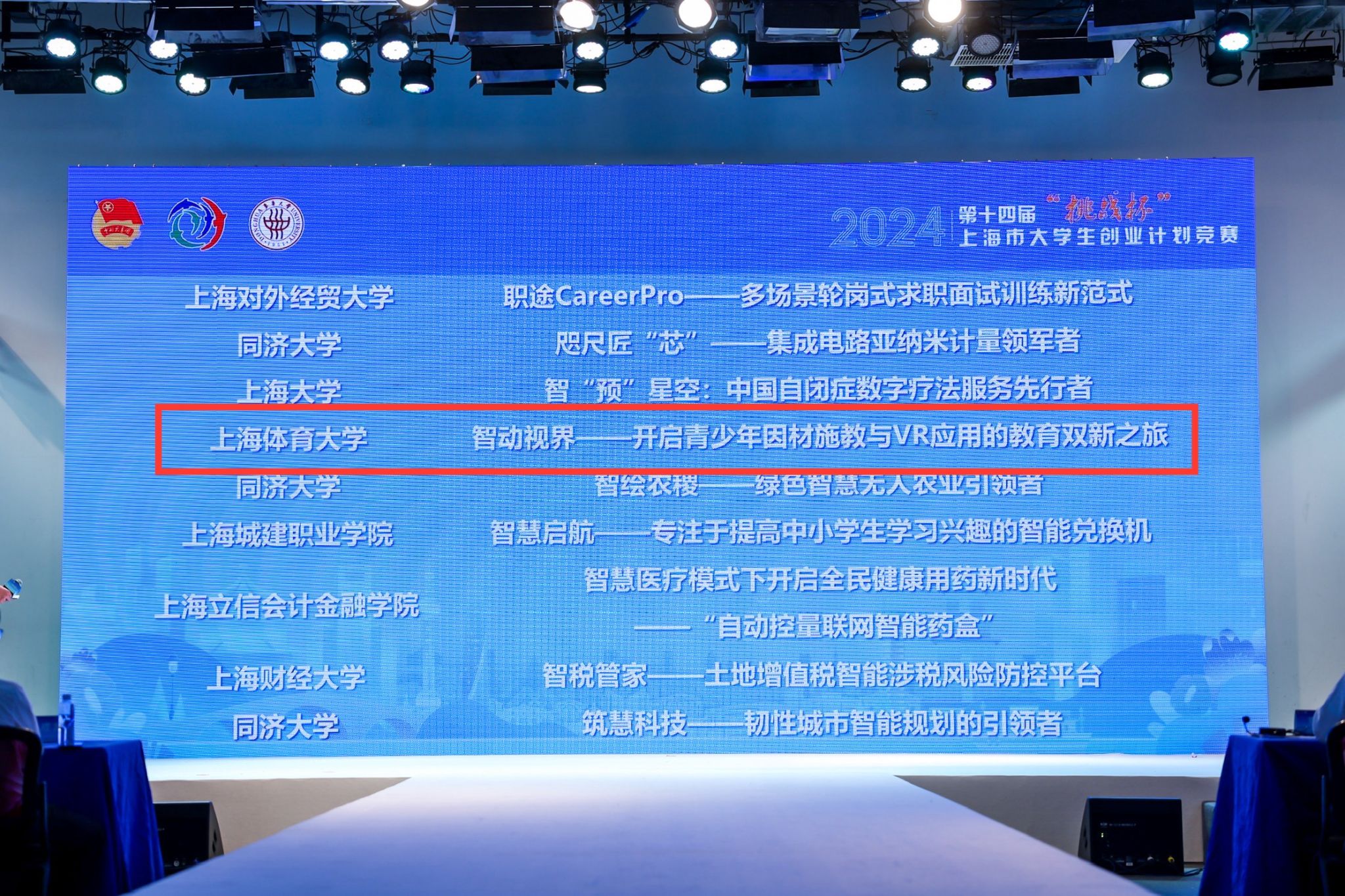 本次大赛规模空前,共吸引来自80余所院校的6.8万名学生参赛,累计提交2.5万个创新创业项目,其中共有74家学校的1131个项目进入第十四届“挑战杯”上海市大学生创业计划竞赛市级复赛。经专家评审,共有358个项目入围市级决赛。通过线下答辩,最终,SUNBET来自运动健康学院的项目《智动视界——开启青少年因材施教与VR应用的教育双新之旅 》斩获上海市赛金奖。