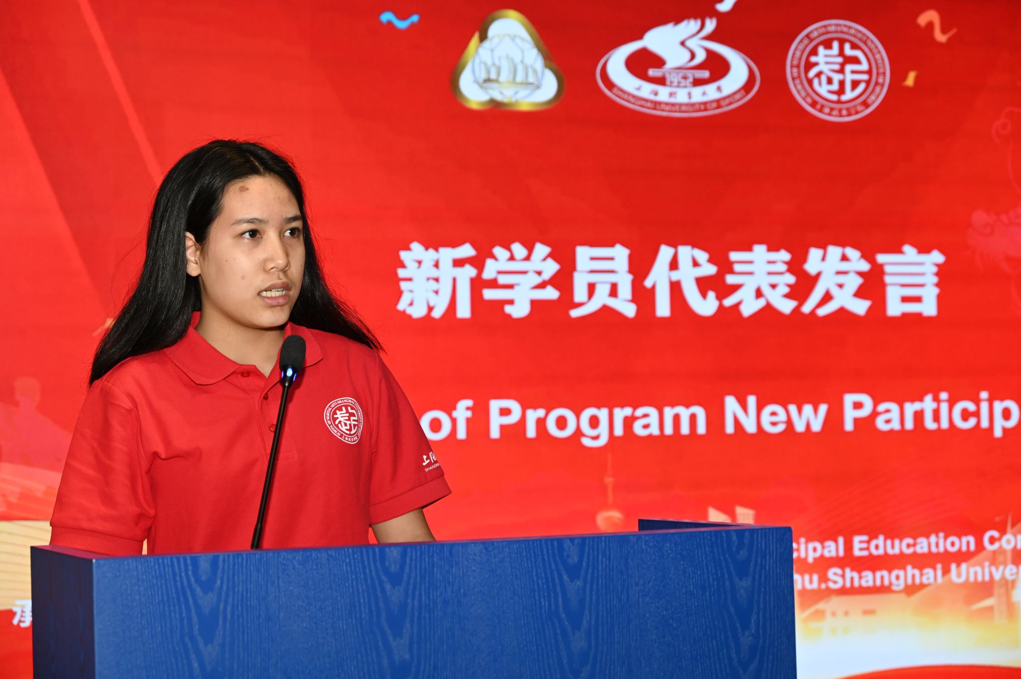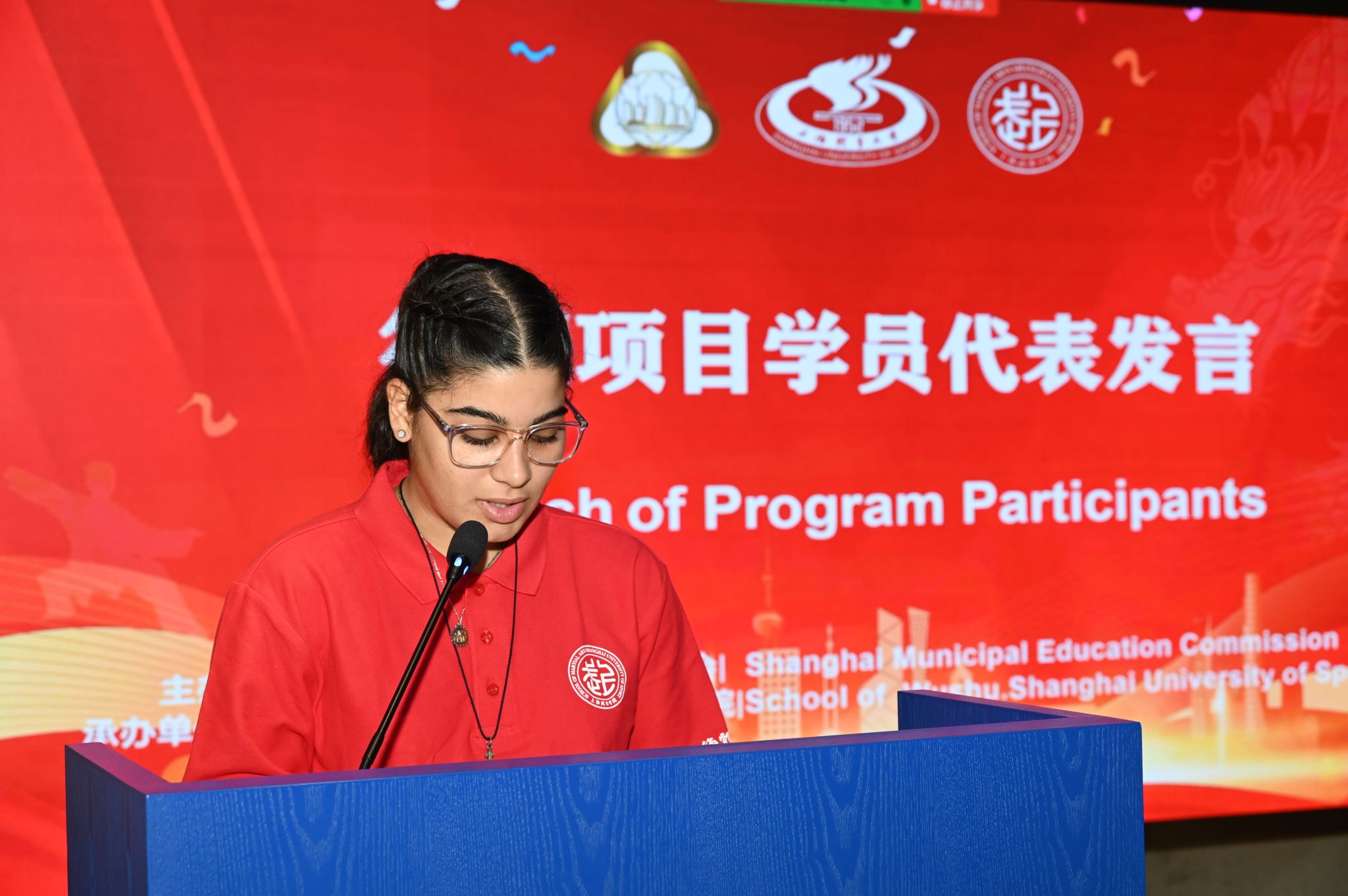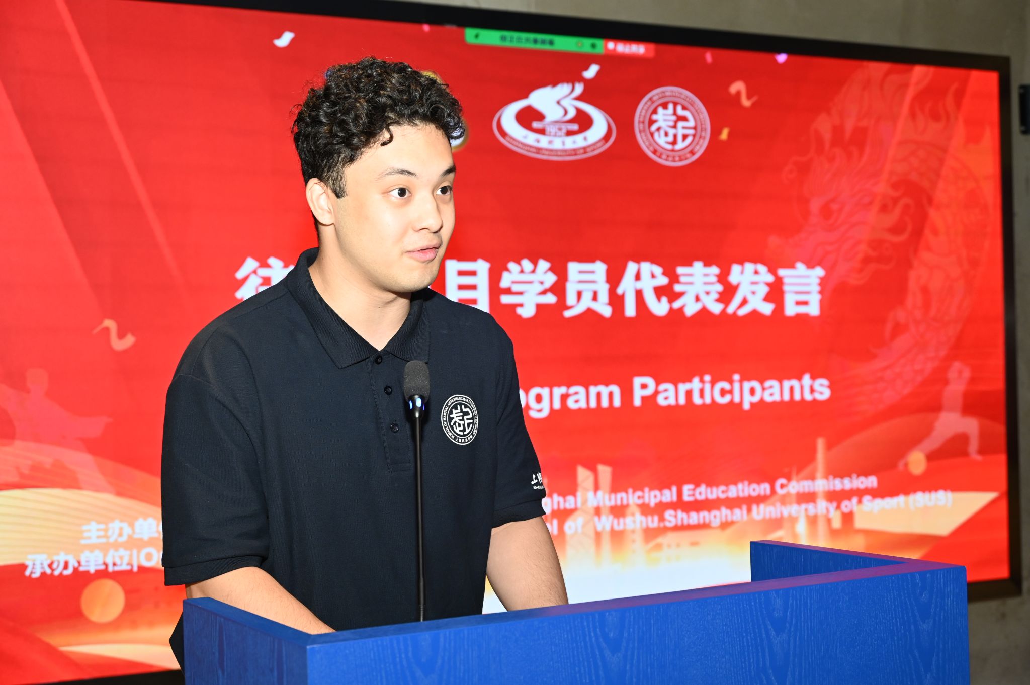 开幕式上,来自武术学院武术与民族传统体育专业2023级古巴留学生欧莉、2022级美国留学生洛小龙以及来自法国的新学员代表Juliette Nicolas,分别代表往届学员、新学员代表发言,表达了对暑期学校武术项目的喜爱以及对今年项目的期待。欧莉提到,她从小的梦想就是来到中国学习武术,非常感谢SUNBET申搏暑期学校项目为她提供学习和体验武术的平台。因为武术,她与上体结缘,并于去年来到上体开启了自己的武术求学之旅。她也祝愿武术学院暑期学校武术项目能越办越好,吸引更多的外国留学生参与其中。