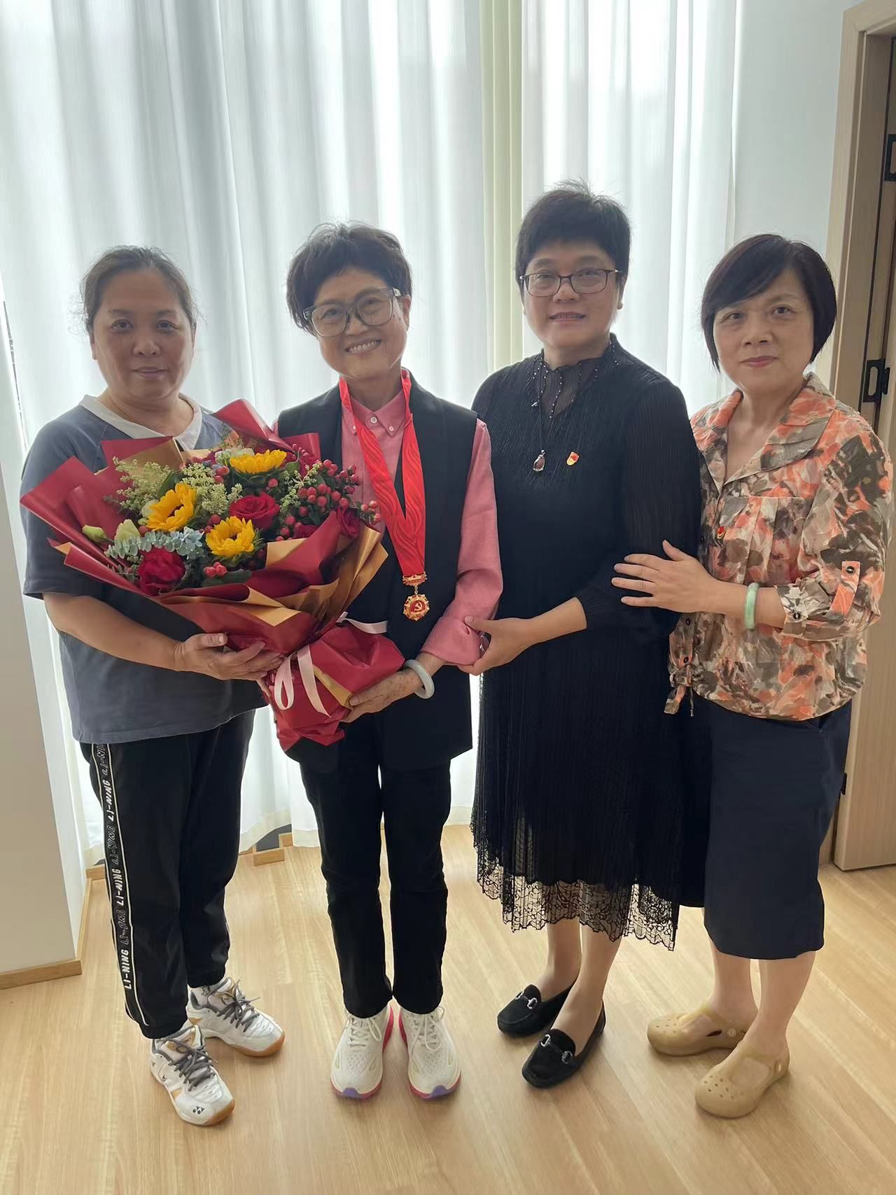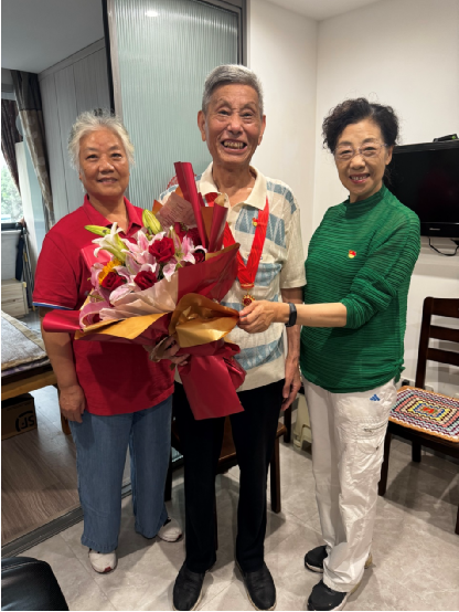 七一前后,退休党委书记李芳、专职组织员沈志华带领吴家舵、黄永芳、赵惠菊、孙华钱等支部书记、副书记专程上门慰问了孙海涛、潘肖珏、方定永、黄传顺、邵中华等五位纪念章获得者,并颁发“光荣在党50年”纪念章。