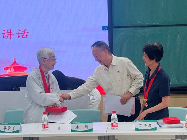 新闻与传播学院邀请“光荣在党50年”纪念章获得者丁美琴、单承芳参加毕业生党员主题教育党课。老党员深情分享了她们入党五十年的岁月和在校工作的经历与感悟。丁美琴说:“‘光荣在党50年’与其说是一份荣誉,倒不如说是一份沉甸甸的责任,激发了我的荣誉感、归属感、使命感,也让我不断鞭策自己坚定理想信念,坚守初心使命,牢记党的宗旨,永远感党恩、听党话、跟党走,离岗不离党、退休不褪色,用实际行动践行入党誓词,做一名合格的共产党员。”单承芳同志分享自己入党的动机,认同马克思提出的剩余价值论,入党至今也一直坚持着此理论,自己更希望别人用“达瓦里希”即同志来称呼自己,用简单的言语道出了作为一名共产党员的真谛。