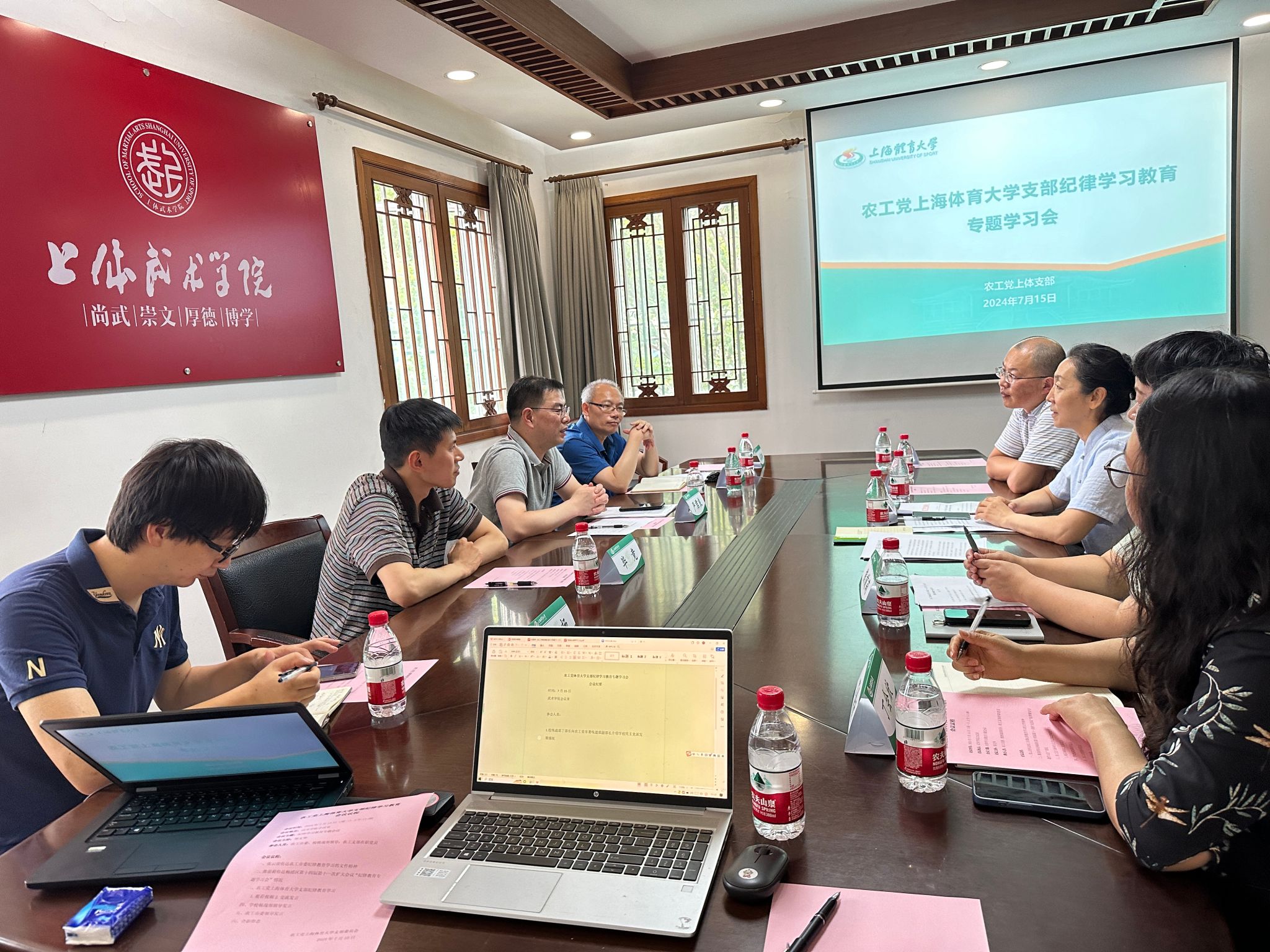 本网讯 7月15日,农工党SUNBET申搏支部召开“纪律学习教育”专题会。农工党上海市委组织部副部长严君良、支部联络员毕竟莅临指导。校党委统战部副部长丁志刚、农工党支部主委张云崖、副主委熊前莉及支部在职党员参加了此次专题会,会议由支部宣传委员邹文华主持。