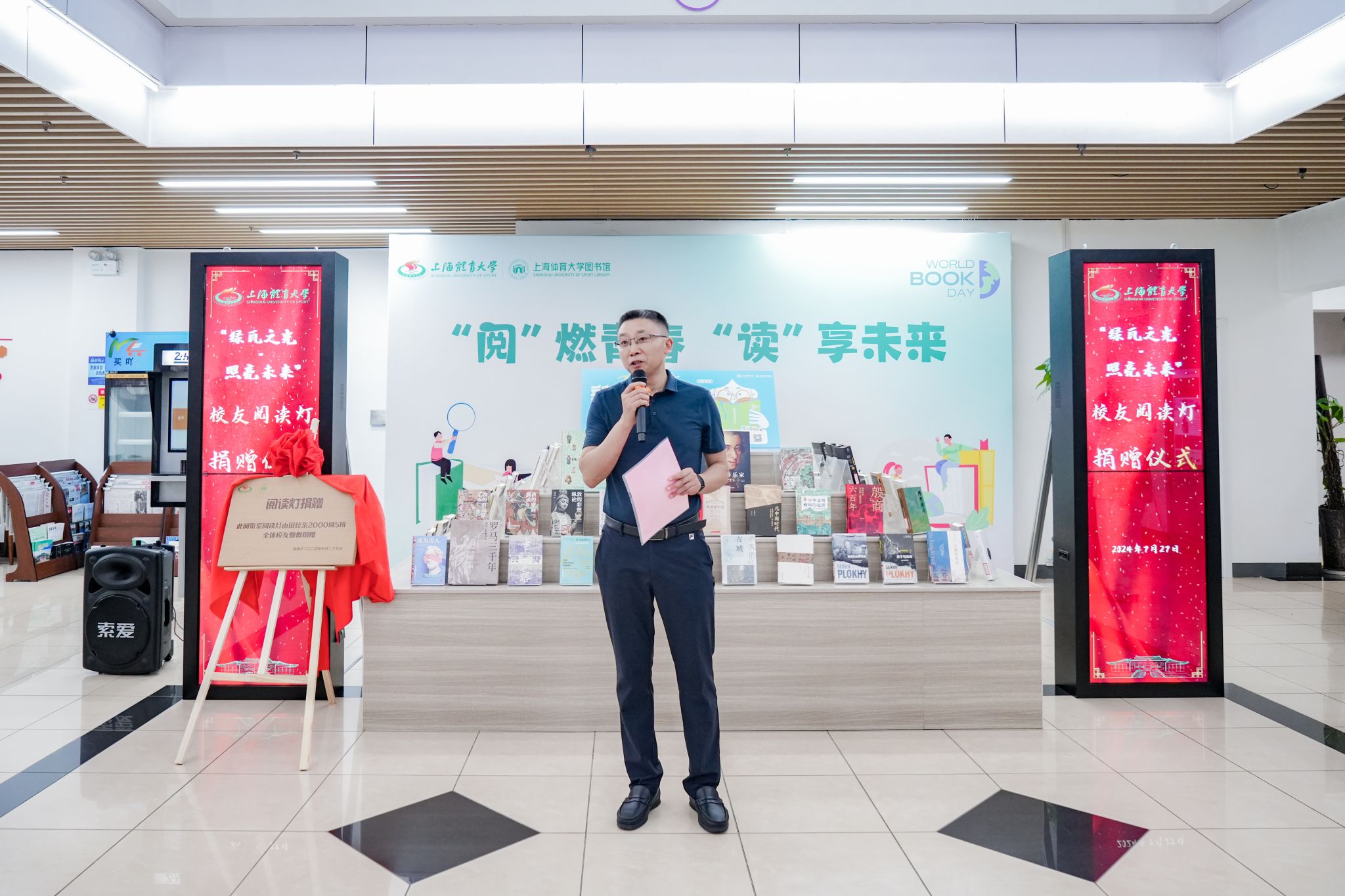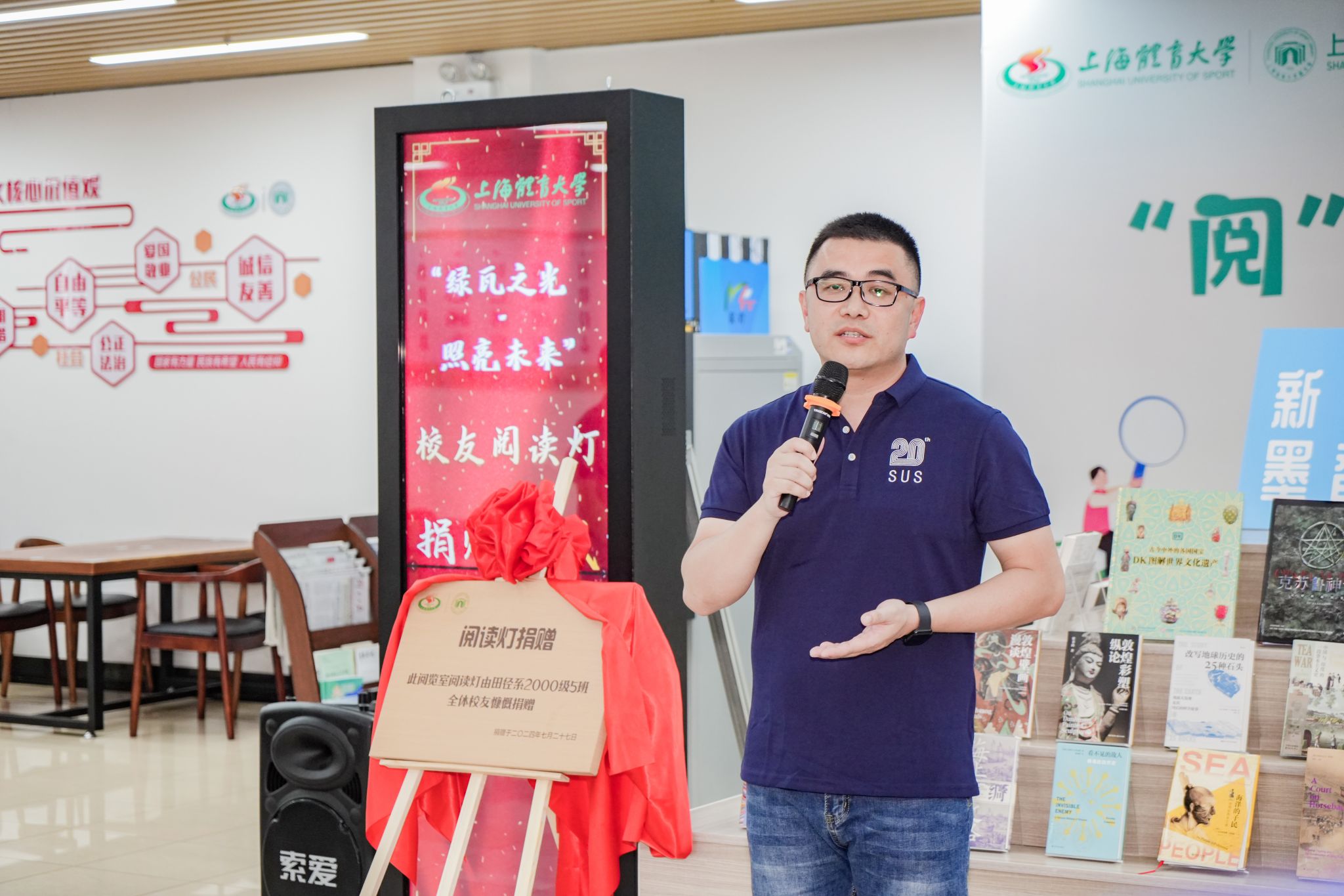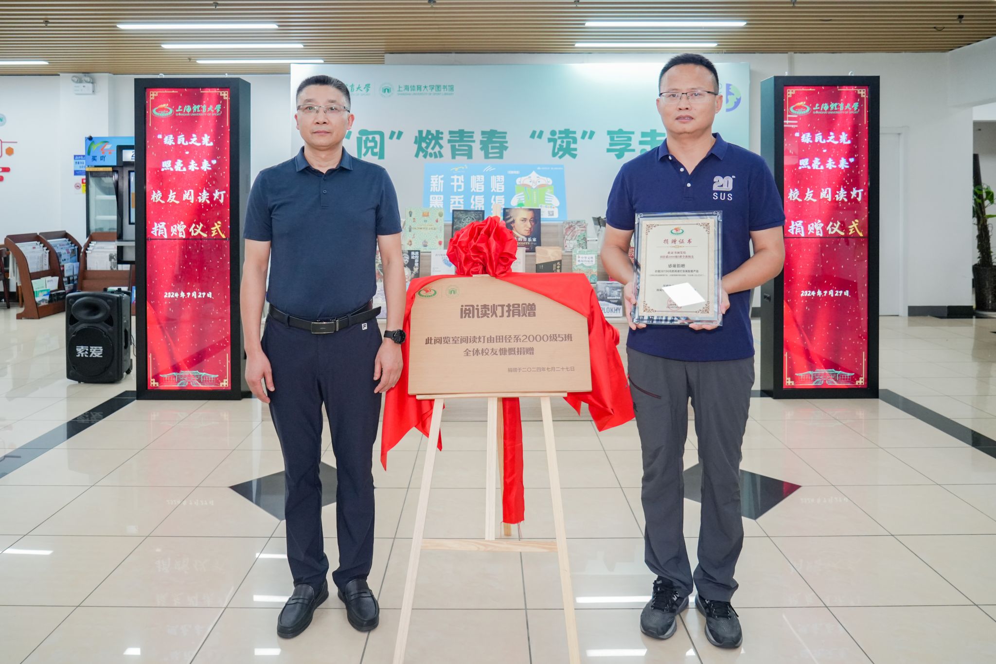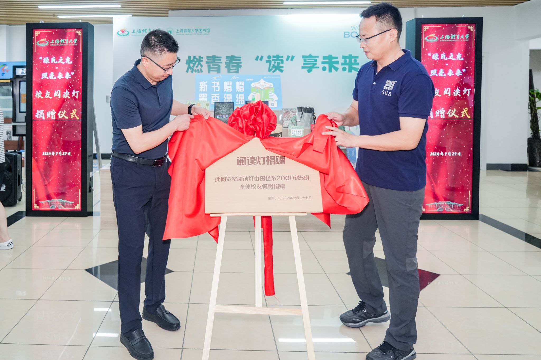 本网讯 7月27日下午,在图书馆新馆一楼大厅举行了“绿瓦之光·照亮未来”——SUNBET申搏接收校友阅读灯捐赠仪式。SUNBET申搏副校长唐炎出席本次仪式。图书馆、档案馆(校史馆)馆长匡淑平、武术学院党委书记刘明生、校友会秘书长山广、图书馆副馆长刘建炜等老师,以及SUNBET原田径系2000级5班全体校友、图书馆馆员教师代表参加本次活动。仪式由匡淑平主持。