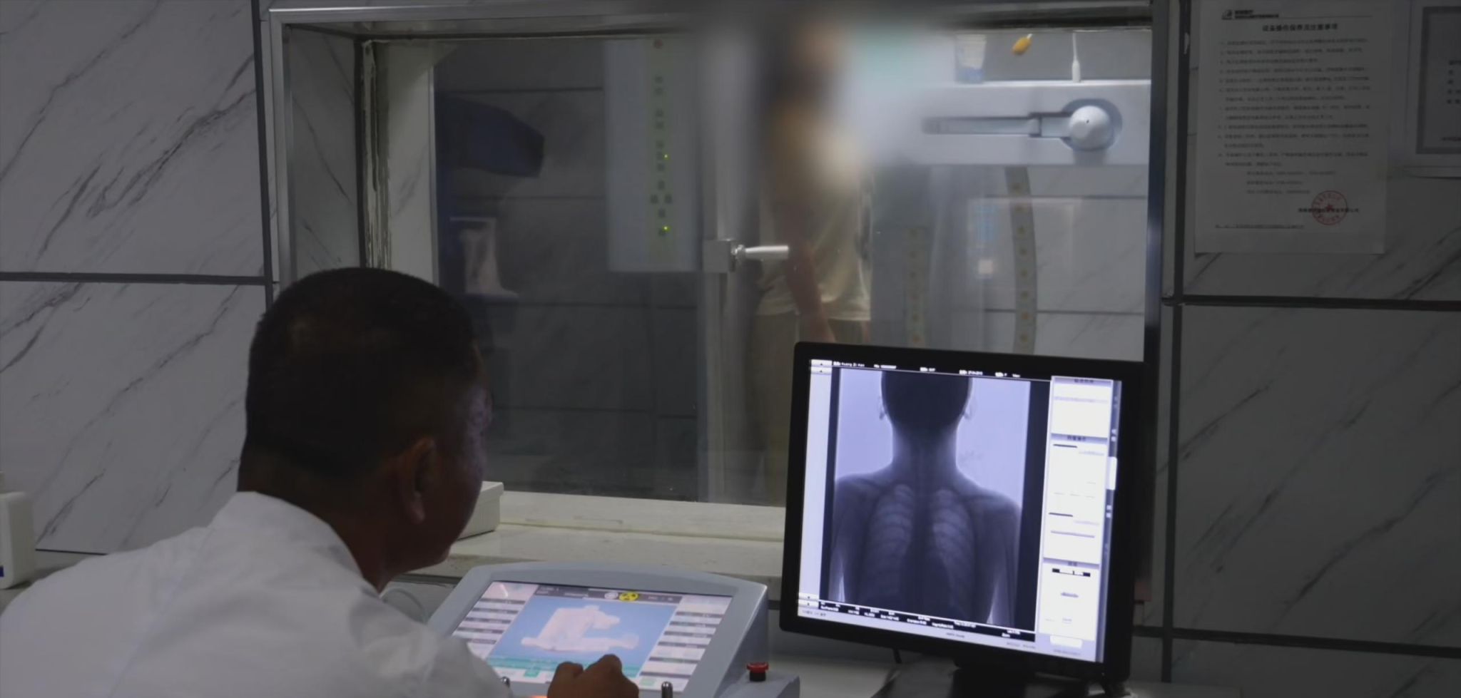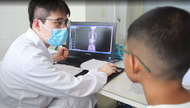 在专家义诊环节,对于脊柱侧弯Ⅰ度及以上(躯干旋转角ATR≥5°)的青少年,在充分自愿的前提下,进行脊柱全长X线拍摄,由脊柱中心专家陈鹏博医生现场义诊,对确诊的青少年提出了治疗建议。