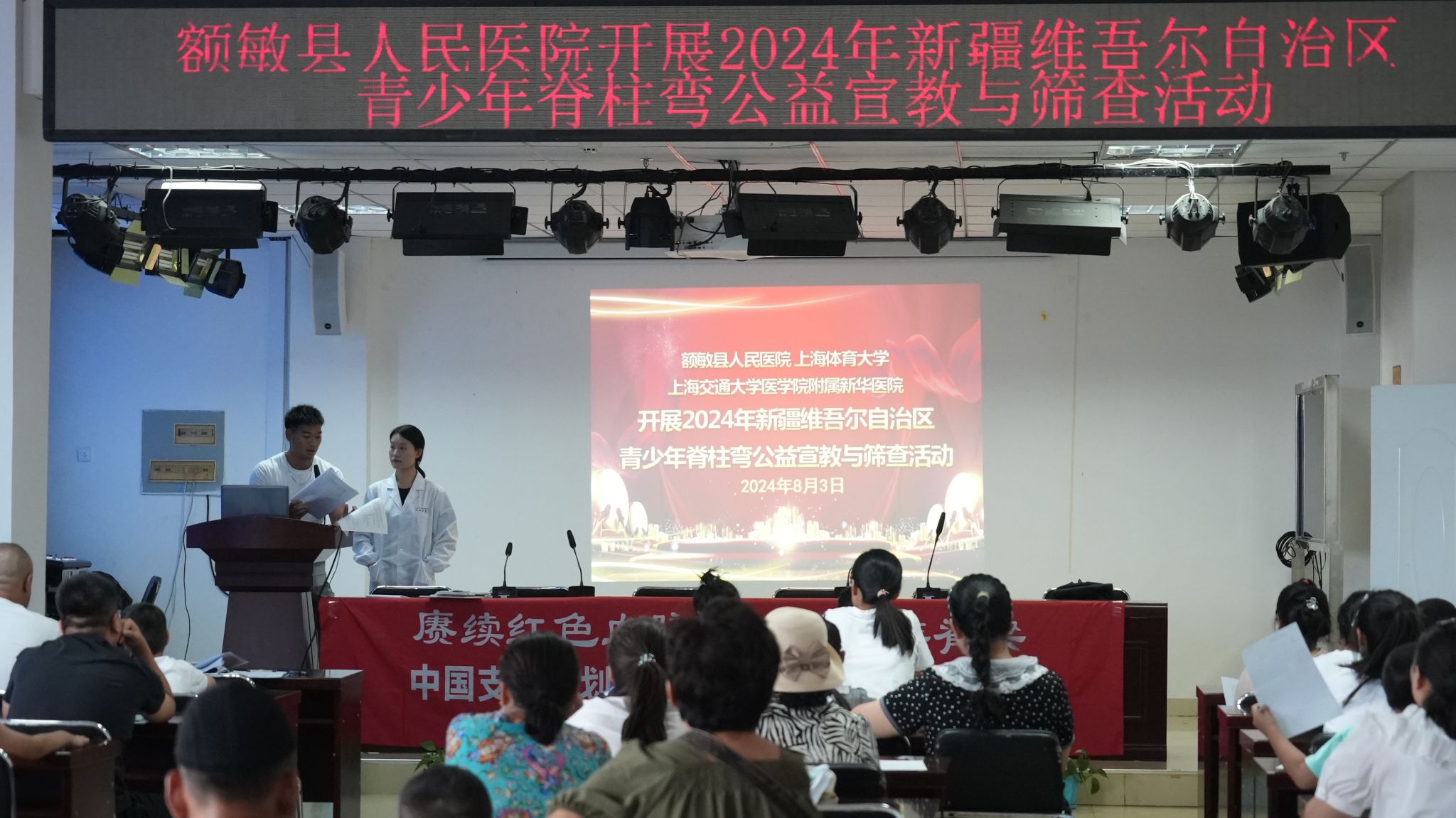 在新疆克拉玛依市、乌苏市、额敏县、托里县卫健委和教育局,以及上海市杨浦、宝山区教育局的支持下,青少年脊柱健康暑期公益服务得以顺利开展,并实现了广泛覆盖。本次公益活动分为三个关键环节:健康宣教、公益筛查和专家义诊。