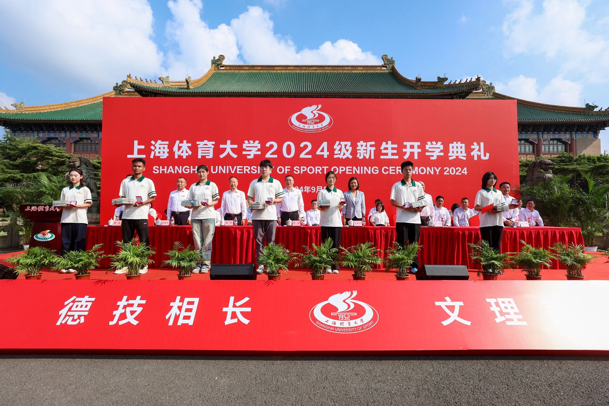 典礼上,校领导为新生代表赠送了上体校徽和《吴蕴瑞全集》,期望2024级新生能从中汲取体育的精神和力量,担负起上体人的使命与担当,奋发有为,砥砺前行。