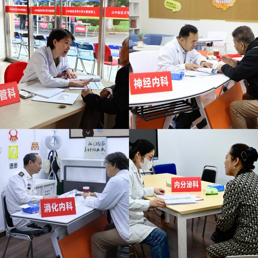 在报到现场,各职能部门、二级学院作为“娘家人”热情接待引导,早早等候老同志的到来。40位身着“黄背心”的学生志愿者分布在不同的岗位,搀扶老人、端茶送水、游戏指导、接待引导,同学们热情阳光的笑容和服务让老同志感受到回到学校的温暖。今年返校活动一改往年的大会庆祝形式,以义诊咨询、游艺活动、休闲茶歇等形式,让老同志度过健康、快乐的“回娘家”的欢聚时光。退休党委(退管会)、老教协、退教协共同举办了庆祝中华人民共和国成立75周年和敬老节主题摄影、书画作品展,学校开放了体育教育博物馆、中国武术博物馆。为老同志们送上最温暖最实在的重阳关怀,显现出欢乐温馨的节日氛围。
