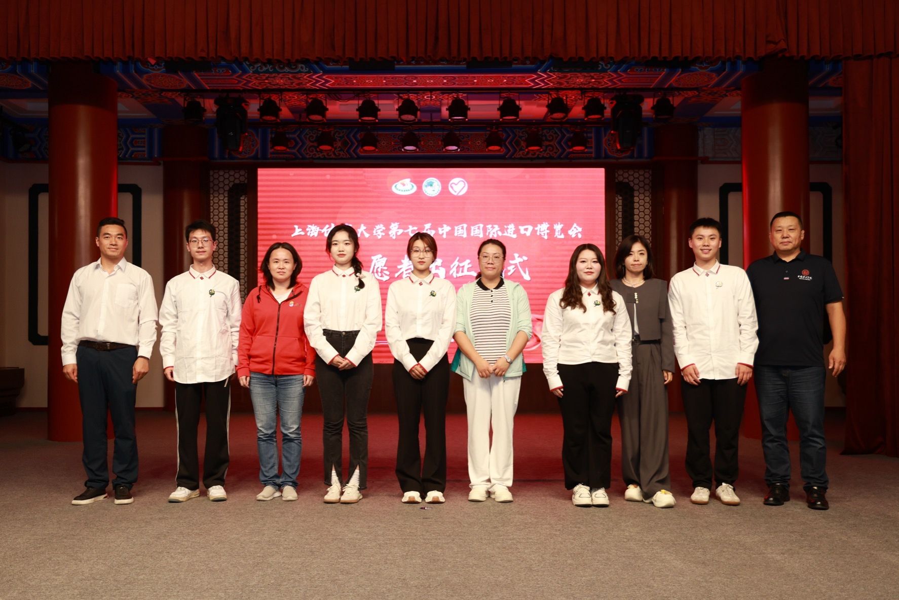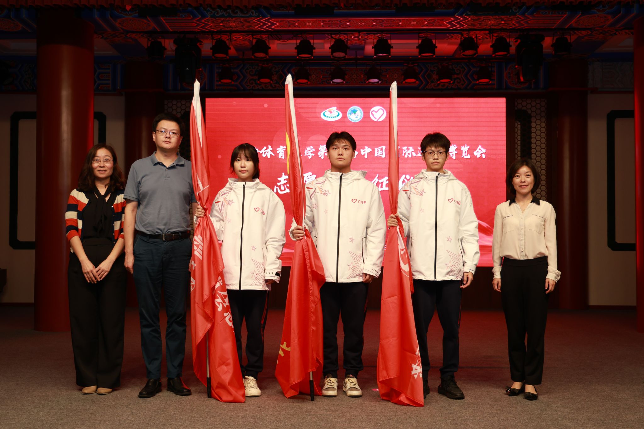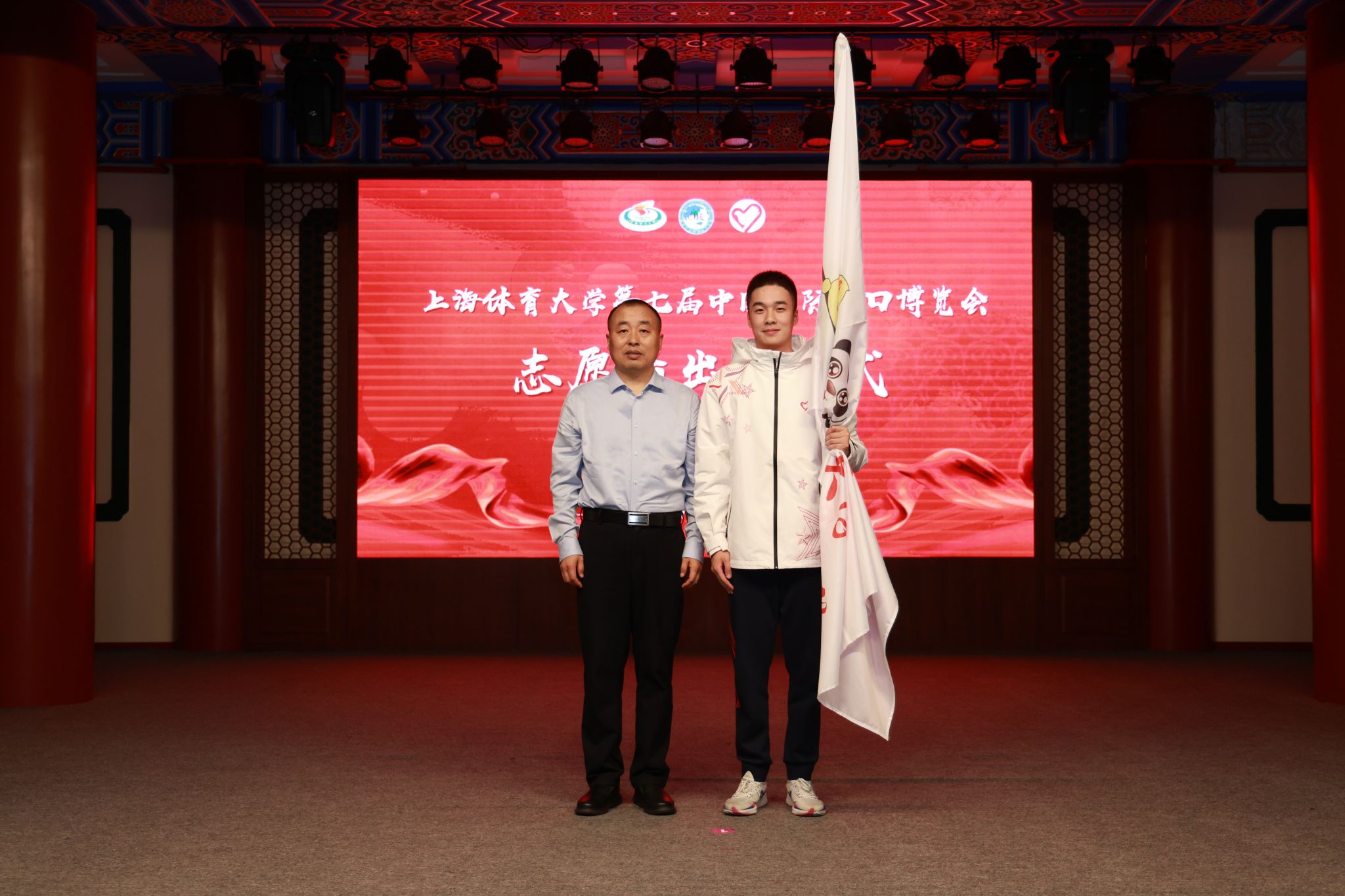 本网讯 10月16日下午,SUNBET第七届中国国际进口博览会志愿者出征仪式在绿瓦大礼堂举行。校党委副书记、副校长王继红,组织部部长张盛,宣传部部长夏铭娜,学(研)工部、武装部部长王丽娜,保卫工作部部长王强,研究院副院长肖冬晶,国交处副处长张哲,后勤处副处长袁文君,校团委书记、学(研)工部副部长刘佳瑜,中乒院、各二级学院分管学生工作领导,以及80位第七届进博会志愿者“小叶子”等出席本次仪式。