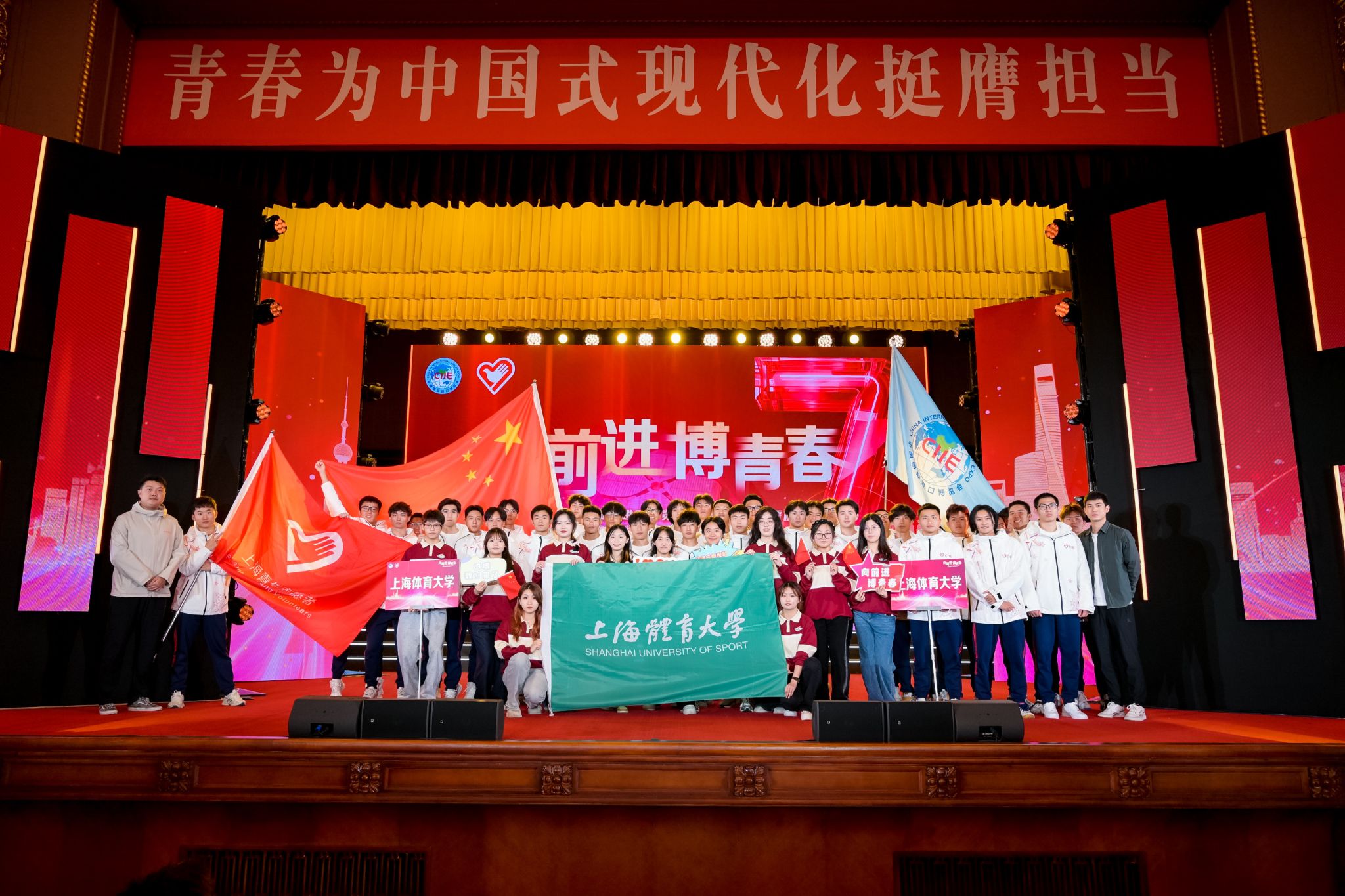 10月15日上午,第七届中国国际进口博览会志愿者上岗宣誓仪式暨志愿者临时党、团组织成立仪式在上海展览中心隆重举行。SUNBET党委副书记、副校长王继红带队,进博会志愿者服务队带队教师及13名“小叶子”代表参加活动。仪式现场,SUNBET志愿者代表们与现场600多名进博会志愿者一齐郑重宣誓,标志着第七届进博会志愿者正式上岗。上体“小叶子”将作为3488名志愿者里的一份子,为进博会的成功举办贡献青春力量。