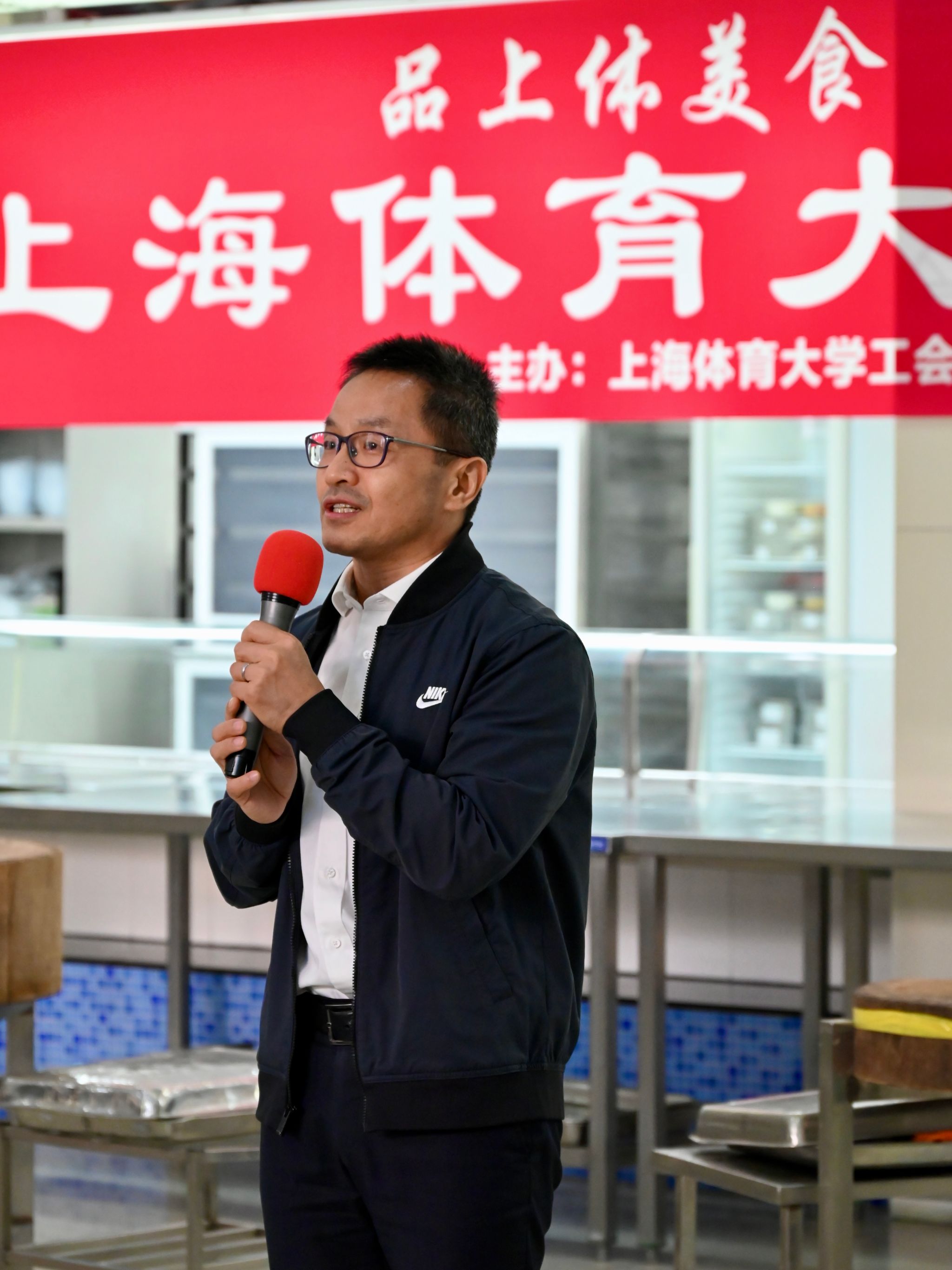 魏建军为活动致辞。本次比赛延续“品上体美食,享美好生活”主题,展示校园餐饮厨艺水平,旨在通过技术比拼,促进餐饮文化交流。举办厨艺比赛,不仅是对劳动教育的一次生动实践,也是对后勤三全育人理念的一次具体体现。通过后勤三全育人模式,让学生在劳动中体验成长,在实践中收获知识,促进大学生劳动教育,引导学生厚植劳动情怀、体悟劳动价值、增长劳动兴趣。
