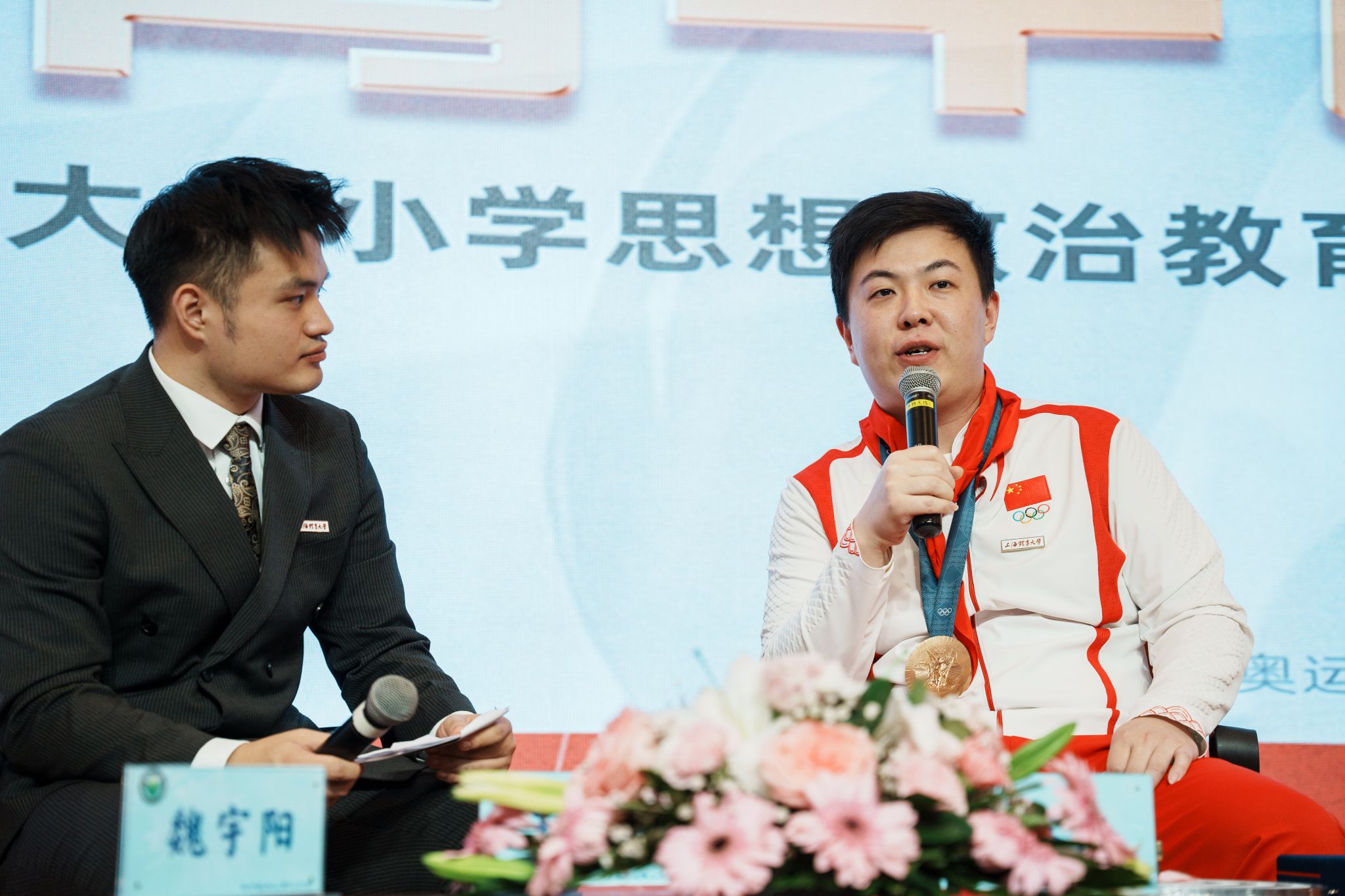 本次活动还邀请到了王鑫杰的启蒙教练夏平老师一同参与。夏教练扎根竞技体育基层工作二十年,培养、输送了一批批优秀运动员。夏教练讲述了早年在天二校园挑选中王鑫杰,指导他一路成长的故事,并祝愿王鑫杰在今后的赛场上再创佳绩。