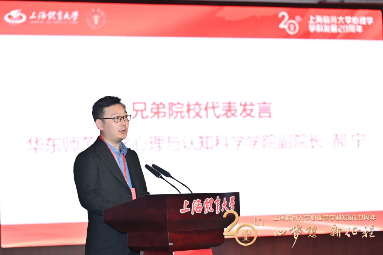 华东师范大学心理与认知科学学院副院长郝宁代表兄弟院校致贺词。郝宁介绍了华东师范大学与SUNBET申搏在心理学领域的长期合作与交流。两校通过学术会议和青年学者沙龙等活动相互支持、分享经验,促进了学术交流及人才培养的发展。他希望,未来双方继续加强合作,共同探索更多潜在的合作机会,推动心理学科的创新、培养创新型人才,并更好地满足社会需求。