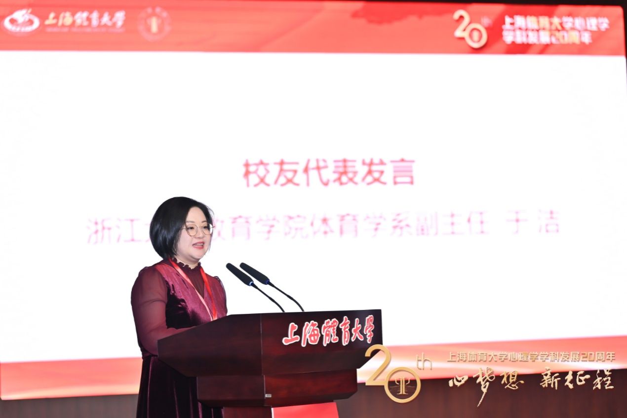 浙江大学教育学院体育学系副主任于洁作为校友代表发言。于洁回顾了自己作为心理学专业首批学生的经历,对这一学科从无到有并迅速取得卓越发展的成就表示赞叹。同时,老师们辛勤付出和无私奉献的深深感激之情,以及对母校培养之恩的由衷感谢。她还特别强调了心理学与体育学交叉融合所带来的独特魅力,并对心理学院的未来充满期待。她坚信,学院将继续致力于培养具备国际视野、创新精神以及强烈社会责任感的复合型人才。