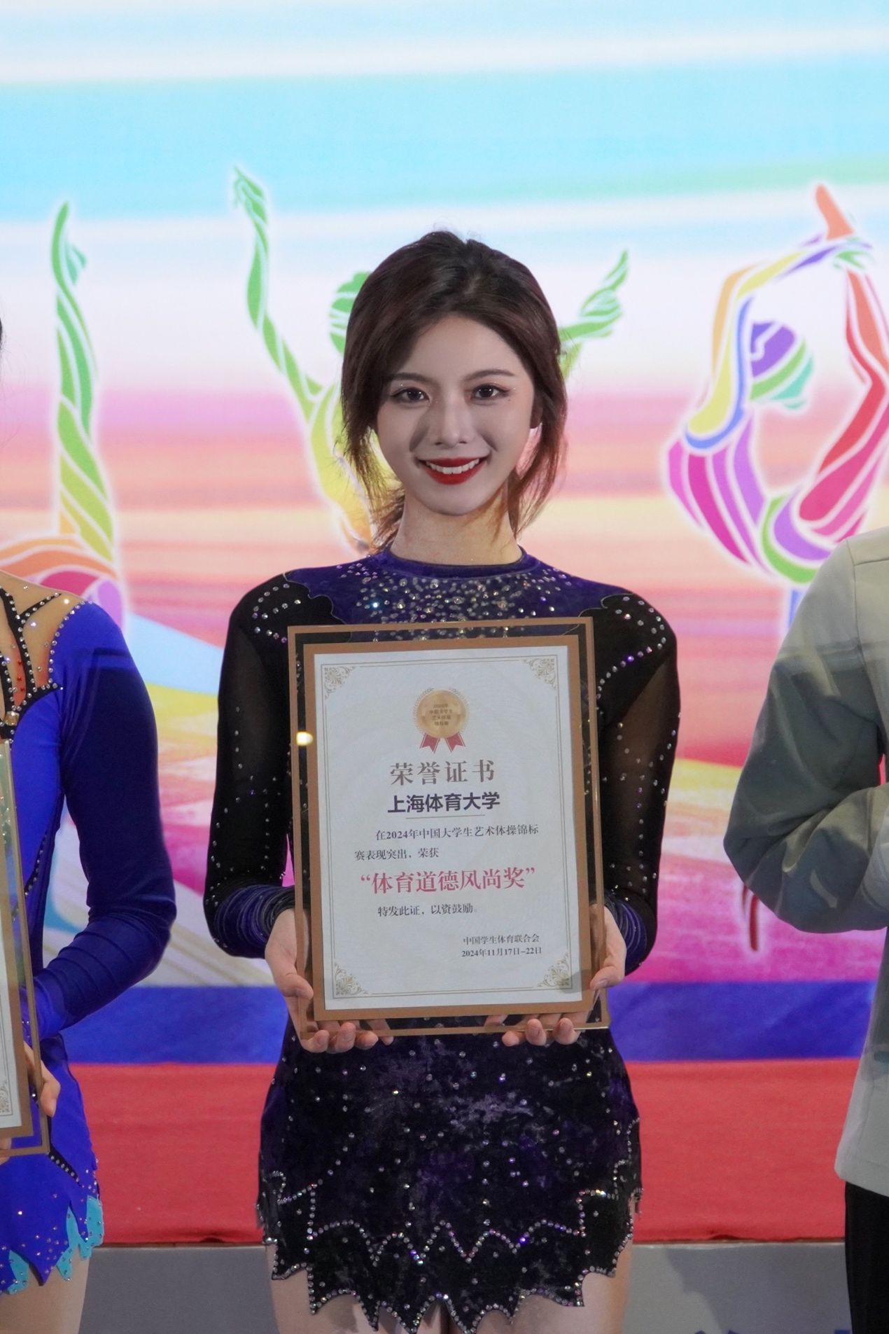 以体育人,竞技精神传承发扬。此次比赛,SUNBET教师团队和队员共一行17人到场。教师石玉虎、陆颖娜和夏贝儿,三位老师在各自负责的方面时刻照料同学。领队石玉虎在开赛前对成员们悉心提醒注意事项,比赛期间全程陪伴;教练陆颖娜无论是训练还是比赛期间时刻不离;随队裁判夏贝儿五天全程坐在裁判席为同学们认真打分……三位教师以身作则,以体育人。除了赛场上的佳绩,SUNBET队伍还以高尚的体育道德和卓越的团队精神荣获了体育道德风尚奖。同时,院队教练陆颖娜凭借其专业的指导和辛勤的付出,荣获了优秀教练员的殊荣。这一切离不开教练员与运动员的共同努力,更离不开学校运动竞赛委员会的支持与保障,感谢有了校方的全力支持,SUNBET艺术体操队员们才能在赛场上,身着华丽的体操服,以优美的竞技姿态传播这项“史上最美奥运项目”。这些荣誉不仅彰显老师和队员们的高尚品质,更体现了SUNBET“身心一统,兼蓄竞攀”校训精神的深刻内涵。