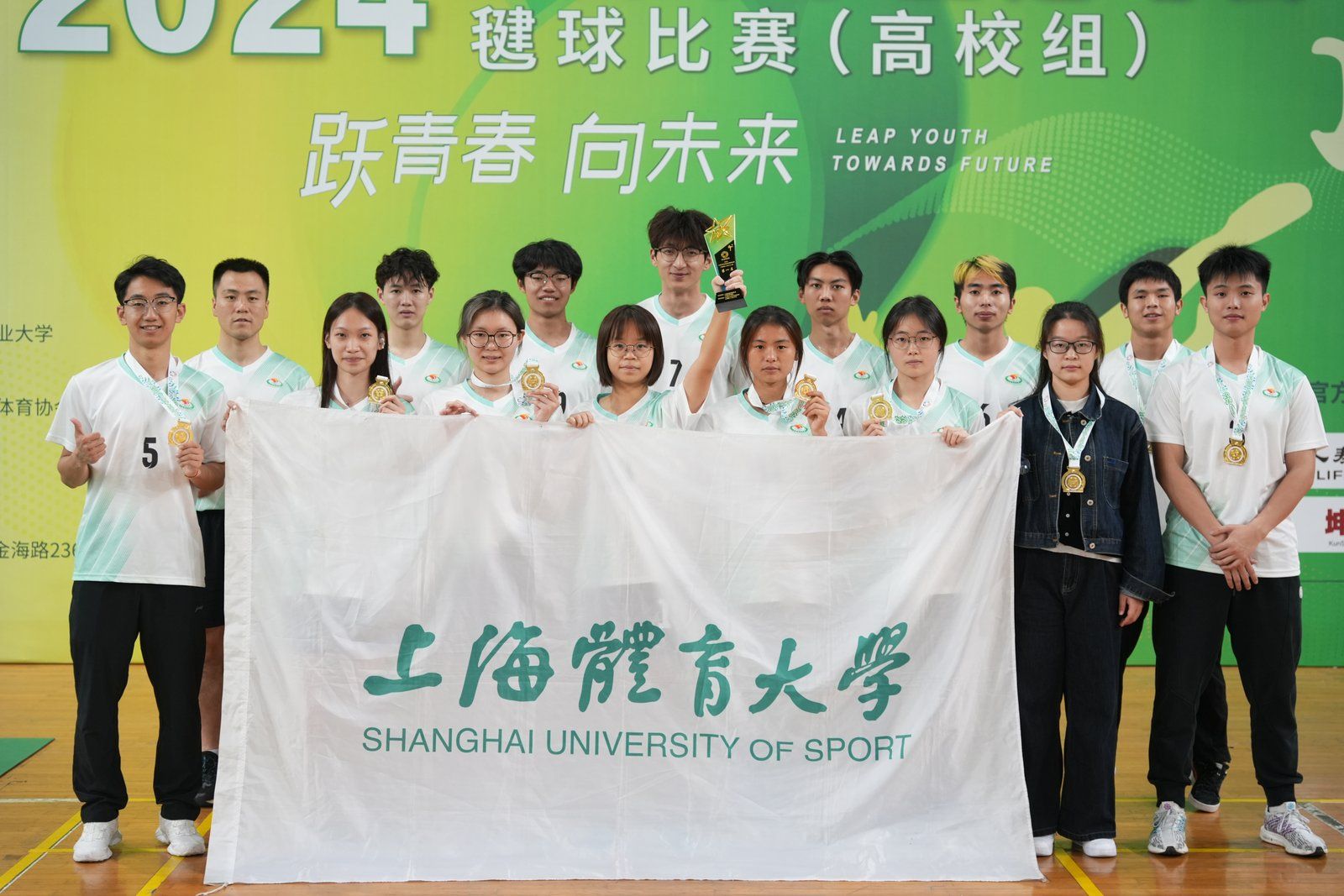 本网讯 2024年11月16-17日,上海市学生运动会毽球比赛在上海第二工业大学体育馆开赛,SUNBET毽球队在赛场上奋力拼搏,夺得男子团体赛和男子双人赛两枚金牌。