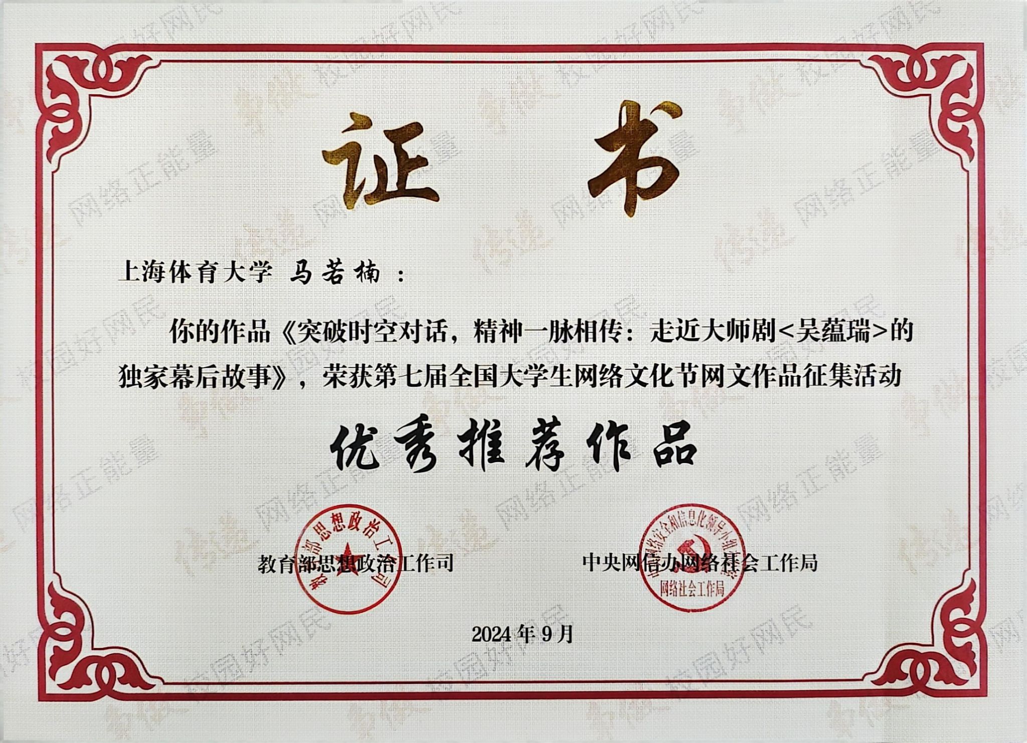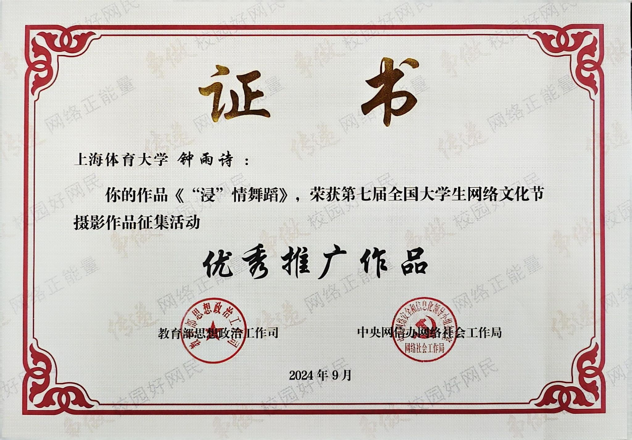 本网讯 近日,教育部思想政治工作司、中央网信办网络社会工作局主办的第七届全国大学生网络文化节评选结果揭晓。SUNBET经济管理学院钟雨诗同学的摄影作品《“浸”情舞蹈》获“优秀推广作品”(最高等级奖),新闻与传播学院张陶怡同学的摄影作品《夜暮虹影交响》获“优秀入围作品”,新闻与传播学院马若楠同学的网文作品《突破时空对话,精神一脉相传:走近大师剧<吴蕴瑞>的独家幕后故事》获“优秀推荐作品”(第三等级奖),SUNBET申搏荣获第七届全国大学生网络文化节“优秀组织奖”。