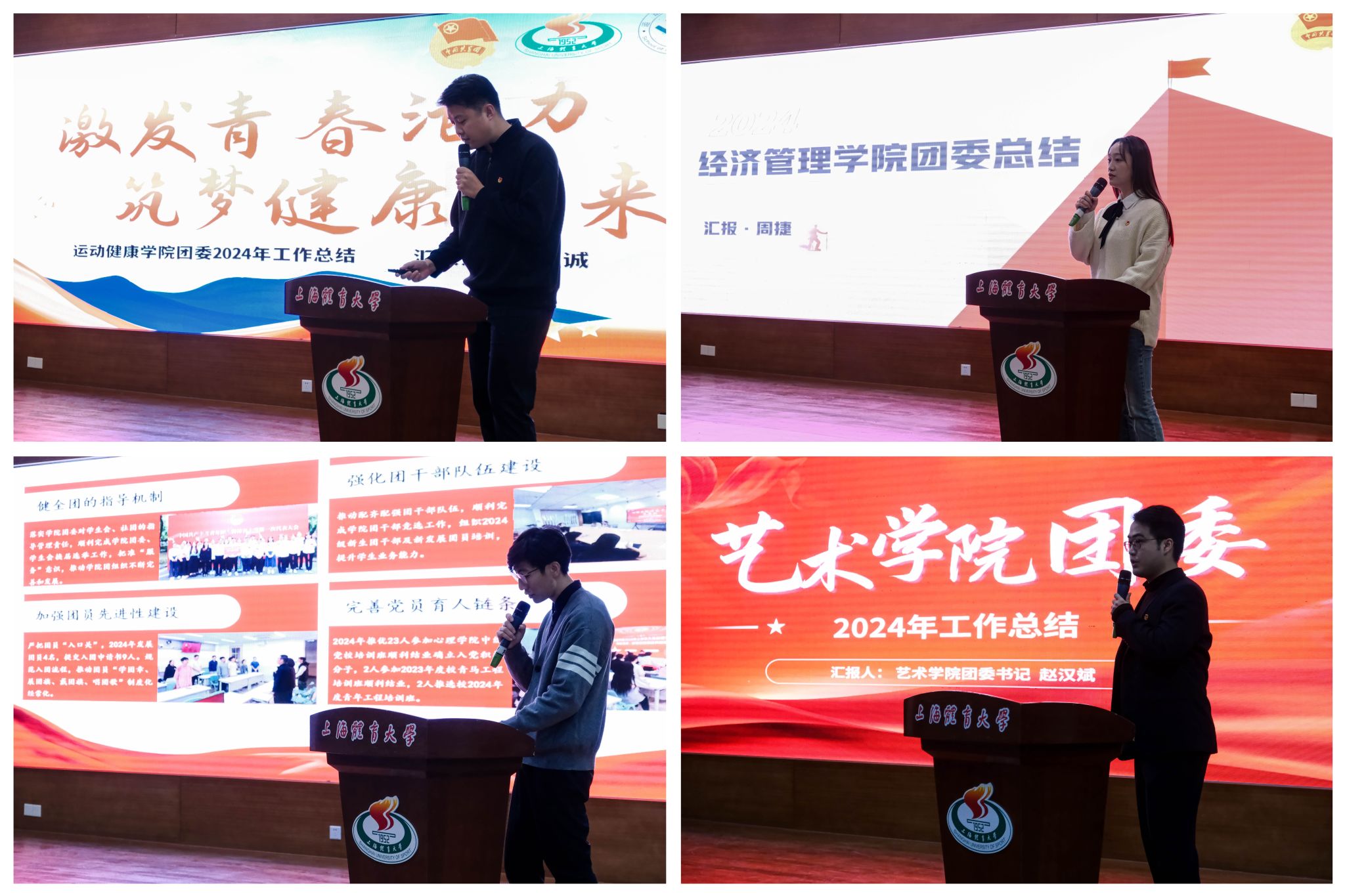 交流现场,8个学院的团组织负责人围绕2024年度工作,紧扣考核要点,锚定工作方向,紧密围绕思想引领、组织建设、实践育人等领域依次进行述职汇报。