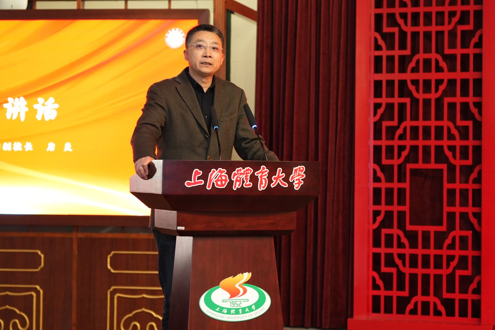 唐炎副校长充分肯定了体育教育学院在2024年取得的各项成绩,并向全体教职工的辛勤付出表示衷心地感谢。他强调,学院要深入贯彻党的教育方针,紧抓时代机遇,扎实推进体育教育改革创新,提升人才培养的时代性和适应性,推动高水平学科建设和高质量发展。他希望全院师生进一步凝聚共识、勇担使命,以更加饱满的热情和昂扬的姿态,在新的一年中奋楫扬帆、行稳致远,为学校“双一流”建设和体育教育事业发展贡献智慧和力量。他还为大家送上新年祝福,在新的一年幸福安康,努力工作,取得新成果、新突破、新发展。