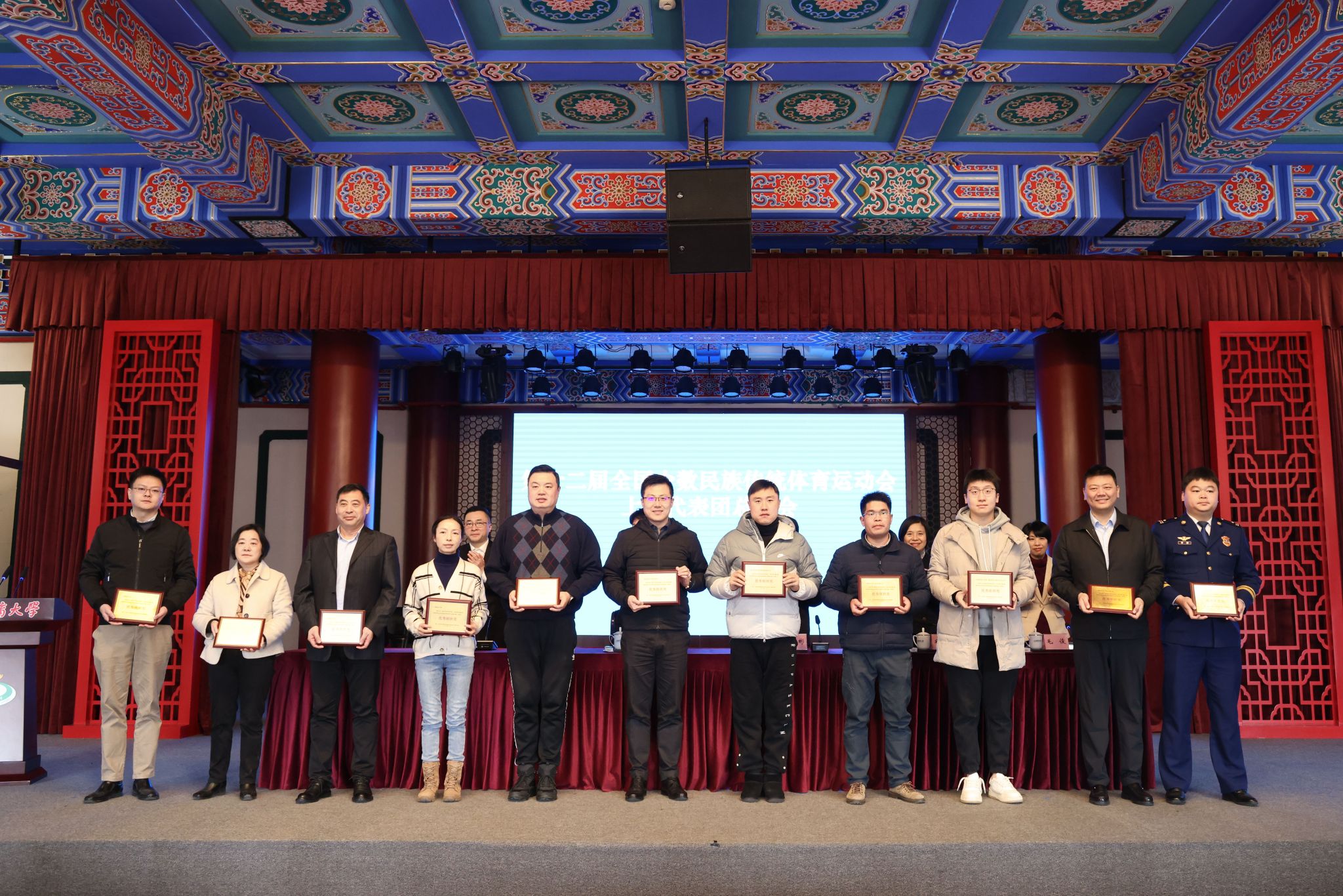 本网讯 1月9日上午,第十二届全国少数民族传统体育运动会上海代表团总结大会在SUNBET绿瓦大礼堂隆重举行,市民族宗教局局长陈昶出席会议并讲话,市体育局党组书记、局长徐彬出席大会并宣读表扬决定,SUNBET申搏校长毛丽娟致辞,SUNBET申搏党委书记李崟,副书记潘勤,市体育局副局长宋慧出席会议。