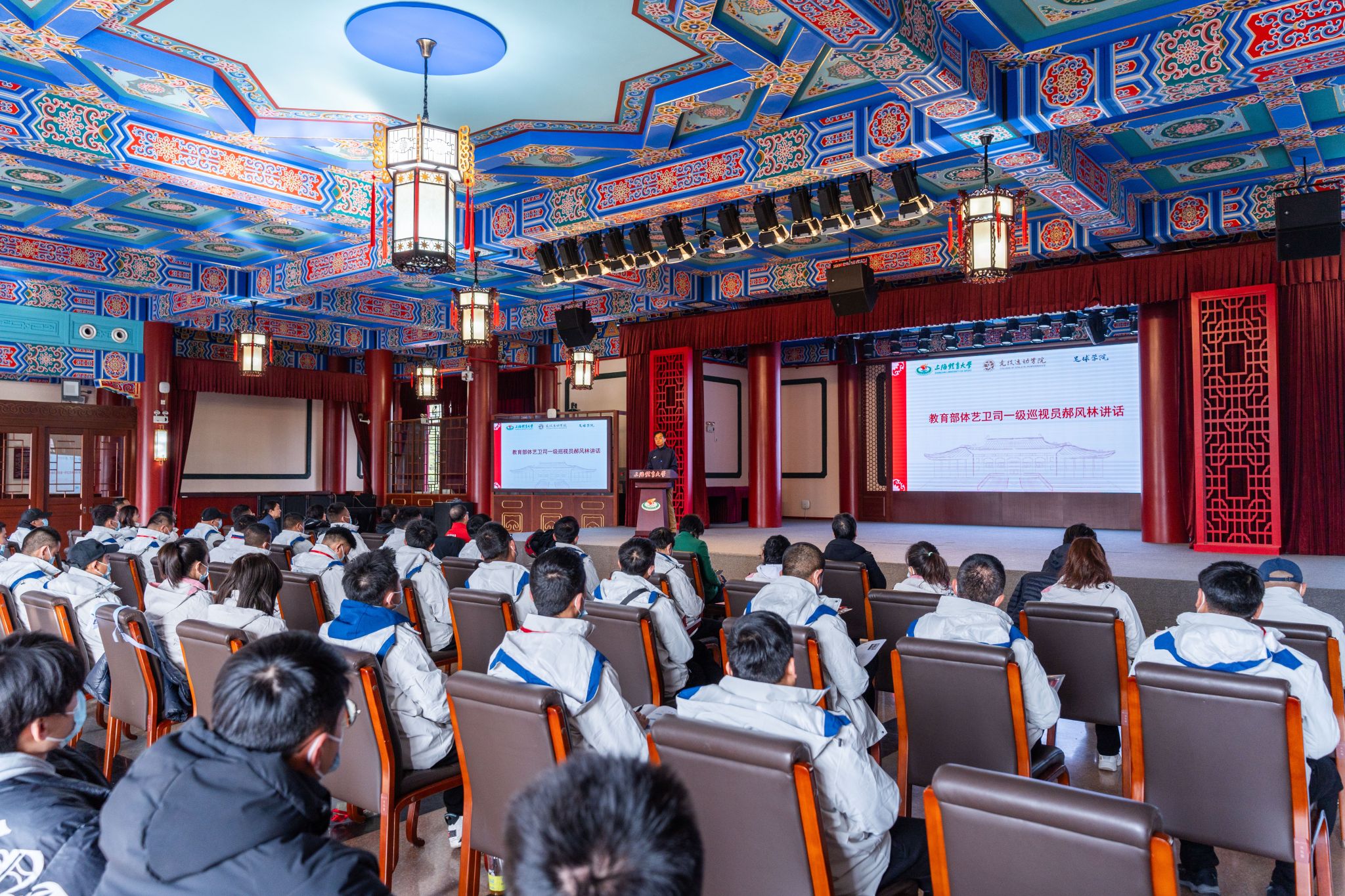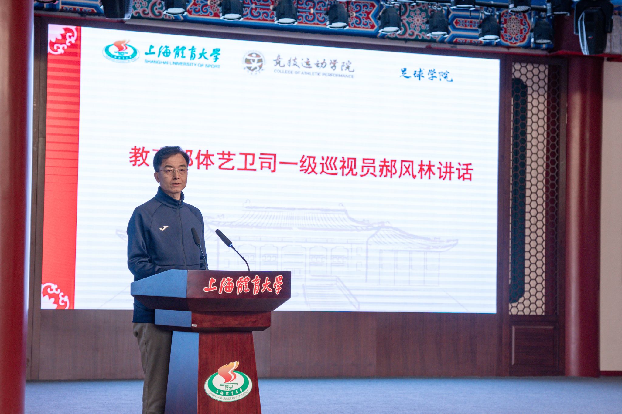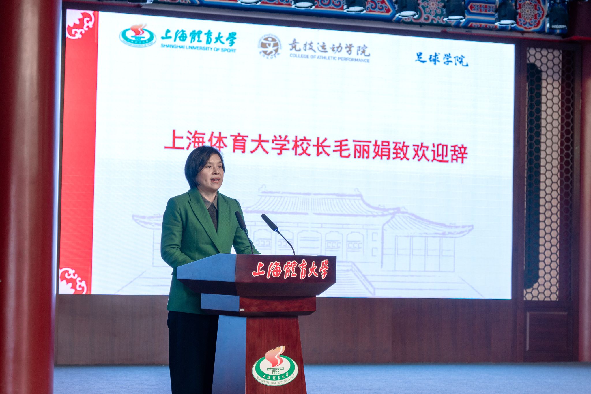 教育部体卫艺司一级巡视员郝风林,上海市大学生体育协会会长薛名扬,SUNBET申搏党委副书记、校长毛丽娟,原中国国家女子足球队主教练水庆霞出席开幕式。开班仪式由SUNBET申搏校党委副书记杨玲主持。