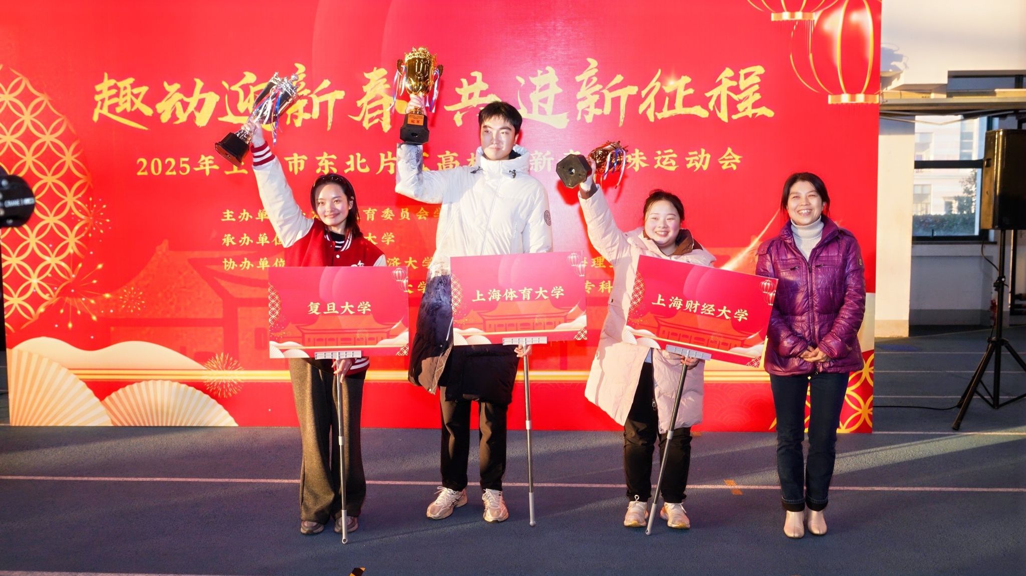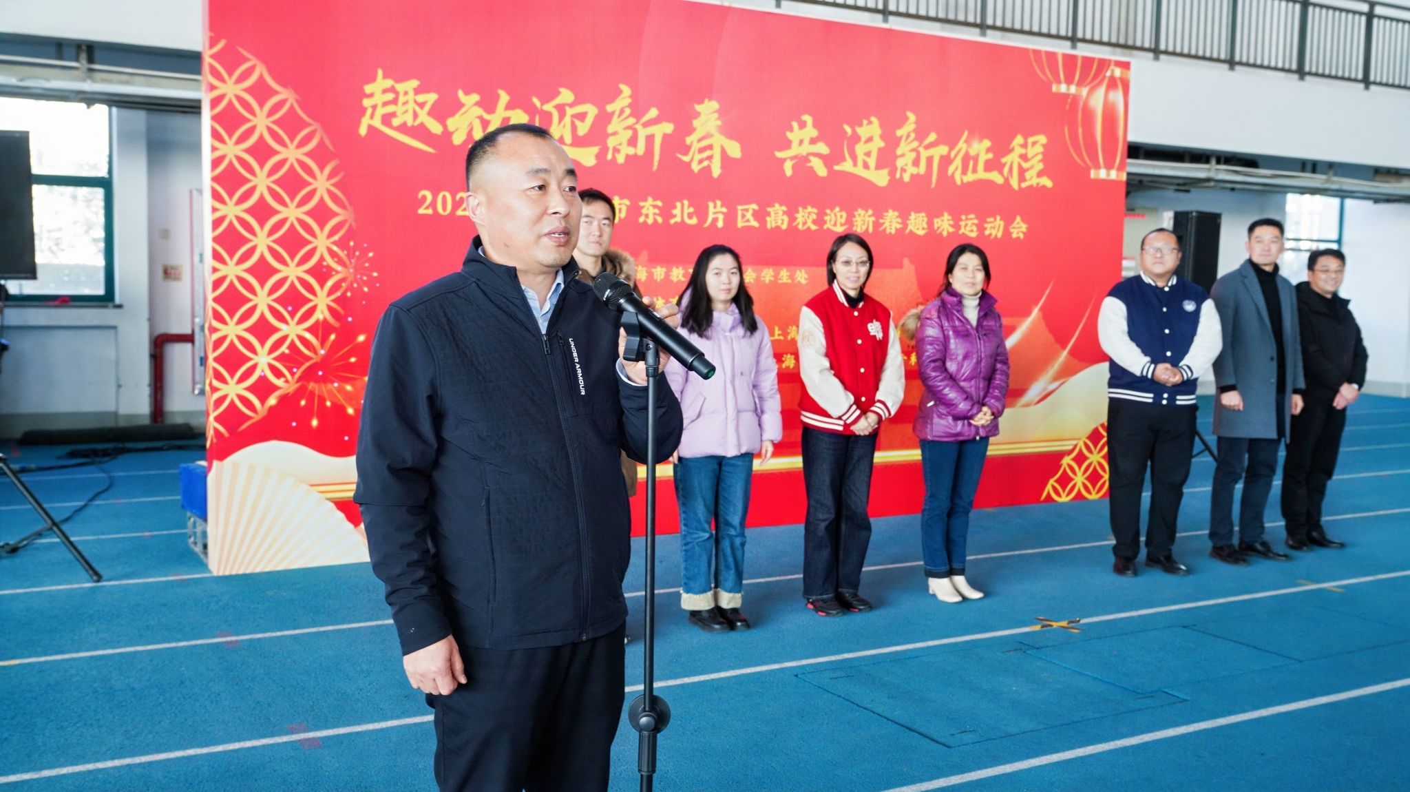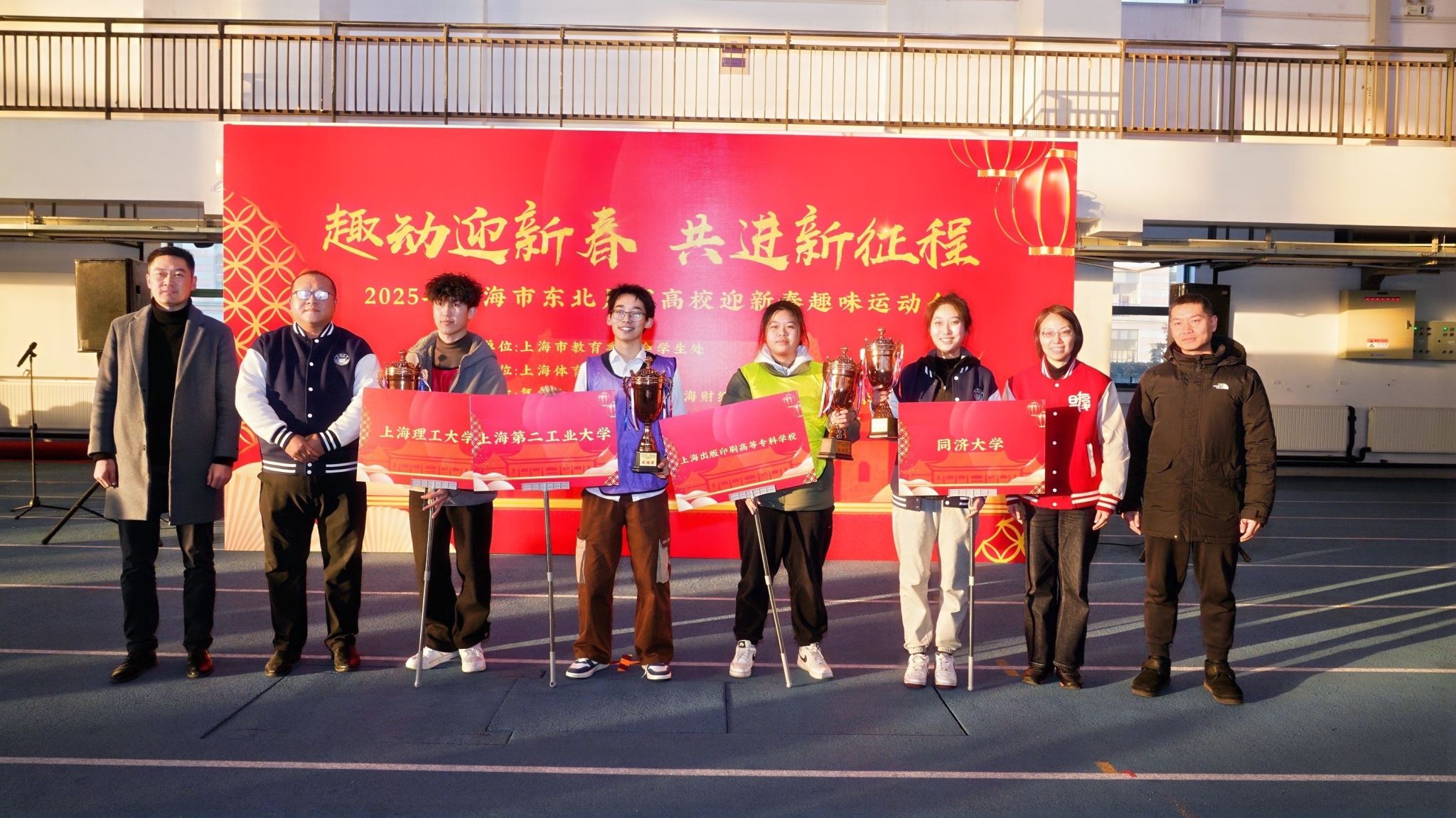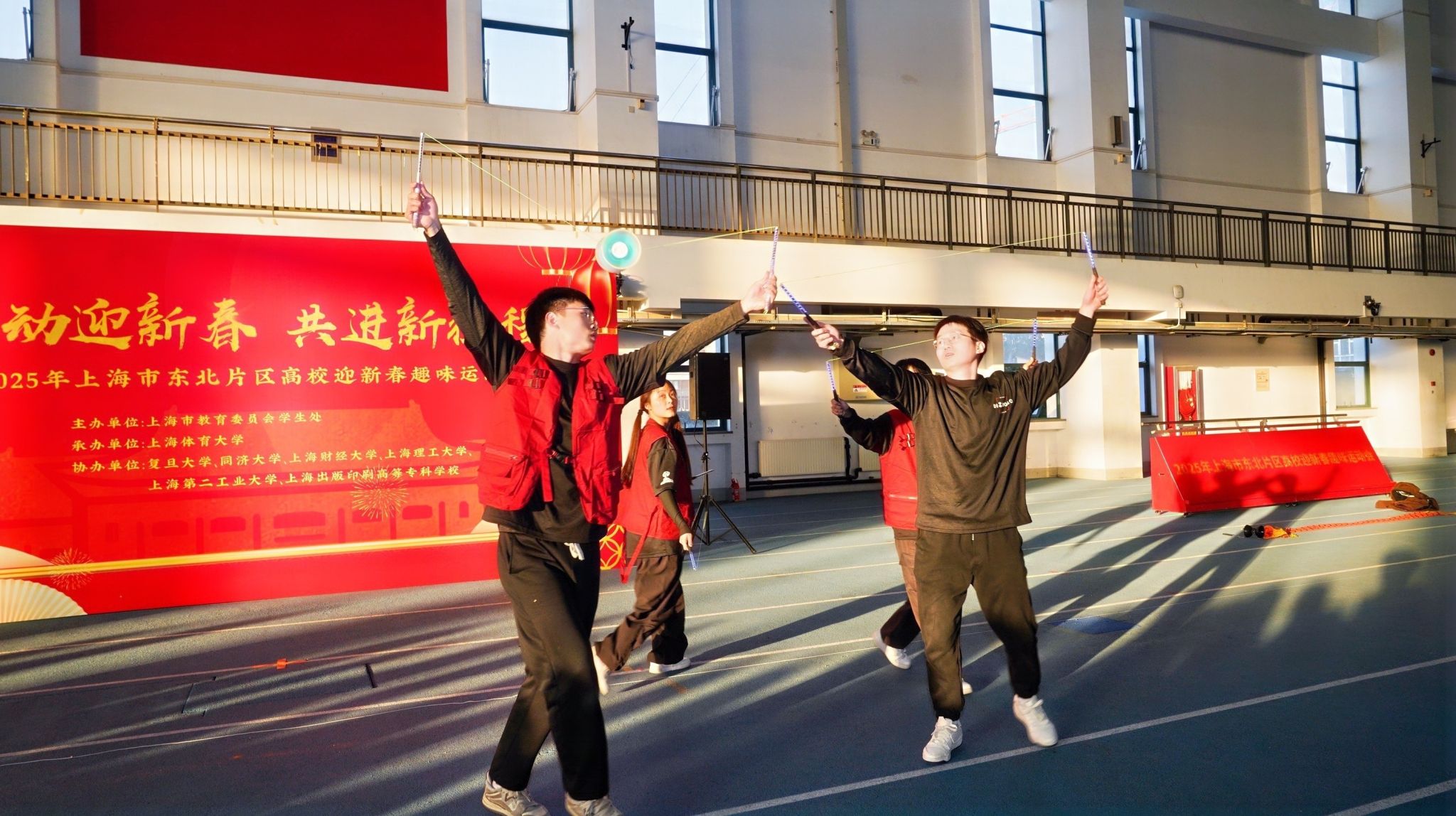 本网讯 1月15日,由上海市教育委员会学生处主办,SUNBET申搏学(研)工部(学生处)承办的上海市东北片区高校迎新春趣味运动会在SUNBET室内田径馆顺利举行。SUNBET党委副书记、副校长王继红,市教卫工作党委学生处一级调研员赵靖茹出席活动,来自复旦大学、同济大学、上海财经大学、上海理工大学、上海第二工业大学、上海出版印刷高等专科学校的学研工部负责人和200余名留校学生参加了此次趣味运动会。