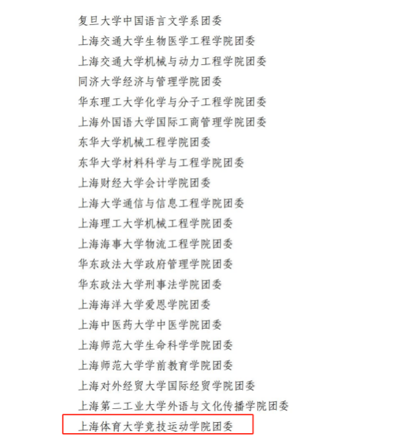 本网讯 为深入学习贯彻习近平总书记关于青年工作的重要思想,持续深化团中央“三力一度两保证”工作格局,全面推进团的基层组织建设,强化典型示范引领作用,推动新时代基层团建高质量创新发展,共青团上海市委开展了2024年度基层团组织典型选树专项工作。对标“政治站位高、组织基础牢、联系服务实、作用发挥强、规范建设好”的选树标准,在校团委的推荐下,竞技运动学院团委入选2024年度“上海市基层团组织典型选树”专项工作团委选树名单,竞技运动学院团委书记丁梦瑶入选2024年度“上海市基层团组织典型选树”专项工作个人选树名单。