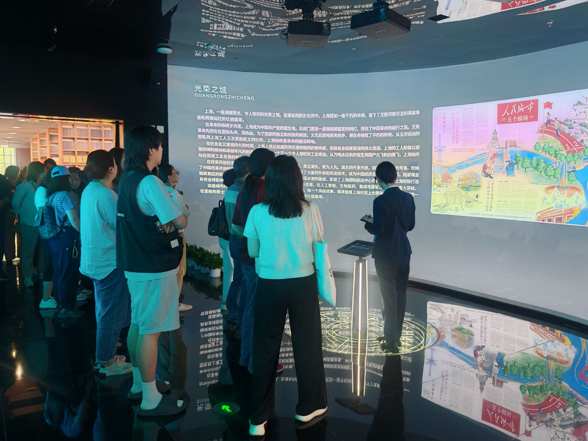 展示馆共设五个主题展区、二十五个专题展项,通过数字化展陈手段,生动立体地宣介人民城市理念的基本内涵与上海打造人民城市最佳实践地的生动实践。跟随讲解员介绍,参观人员更多地了解了在人民城市建设的实践过程中,政府如何将理念落到实处,如何提高老百姓的生活幸福指数。
