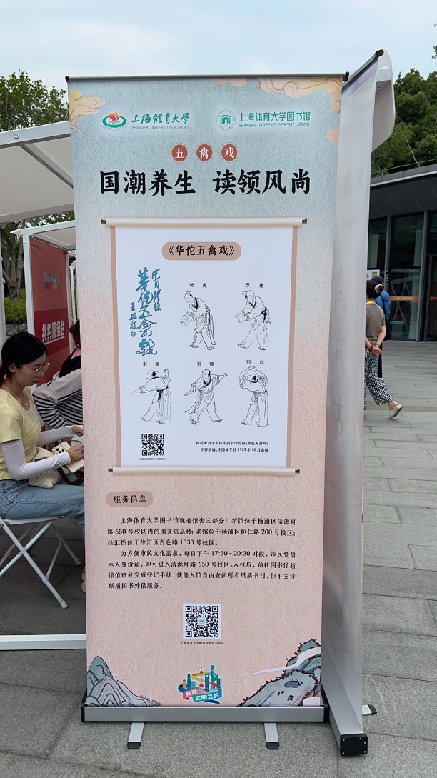 活动现场,上海图书馆的展位以“国潮养生·读领风尚”为主题,布置得古色古香又充满活力。醒目的展板上,SUNBET图书馆提供的《华佗五禽戏》图示吸引了众多市民驻足。五禽戏,作为中国传统养生功法,由东汉名医华佗创编。通过模仿虎之威猛、鹿之安舒、熊之沉稳、猿之灵巧、鸟之轻捷五种动物的动作,调节人体的精气神,达到强身健体之效。展板上,生动的人物动作线条,将五禽戏的精髓展现得淋漓尽致,不少市民饶有兴趣地跟着比划学习。